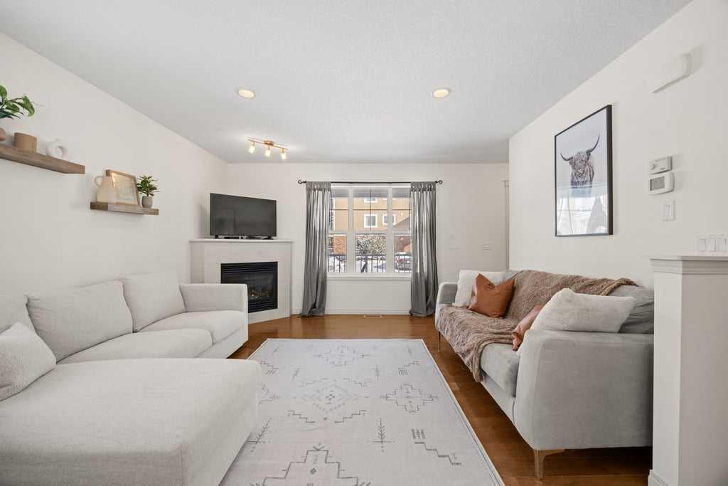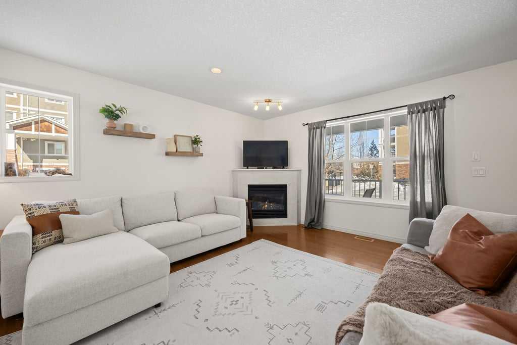 Welcome to this bright end-unit townhome in the heart of Cranston, backing onto the complex’s green belt for added space and privacy. Thoughtfully maintained and refreshed, the home features new paint throughout the main floor and upper level (February 2026), creating a clean, modern feel from the moment you step inside. The main floor offers an open, comfortable layout where the kitchen, dining, and living areas flow together seamlessly — finished with hardwood flooring, a cozy gas fireplace, stainless steel appliances, quartz countertops, a large island, and a recently upgraded Bosch dishwasher (June 2024) that enhances both style and everyday functionality. Upstairs, you’ll find three bedrooms including a spacious primary retreat with a walk-in closet and private 3-piece ensuite. The fully finished basement adds valuable living space with a large family room, along with dedicated storage and laundry areas — ideal for growing families or flexible day-to-day living. Practical upgrades like the replaced hot water tank (March 2022) add peace of mind and long-term comfort. Out front, two titled parking stalls and a welcoming porch add everyday convenience, while the sunny southwest-facing deck overlooks open green space — perfect for kids, pets, or relaxing outdoors. Set within one of Cranston’s most family-focused communities, residents enjoy access to parks, playgrounds, pathways, and the private Century Hall amenities, with nearby schools, shops, and Seton’s services just minutes away. Here, lifestyle and location come together, offering a comfortable home base in a neighbourhood designed for connection, convenience, and outdoor living.