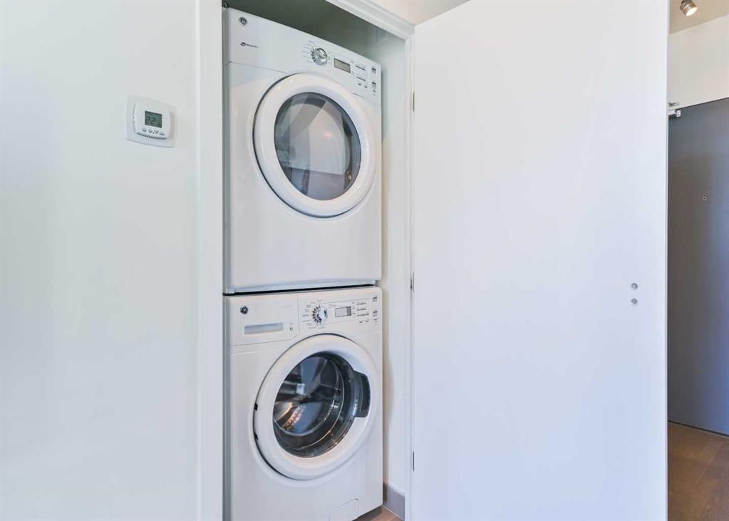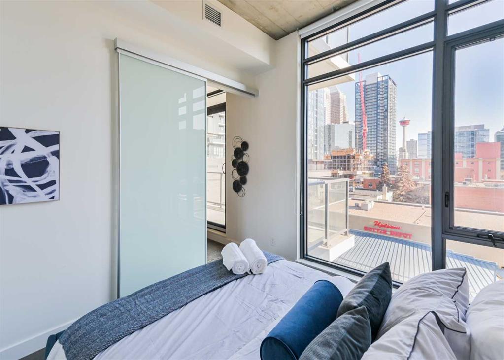 * Furniture included and Air bnb Friendly + Titled parking - In the heart of the Beltline, you'll find this trendy urban 1 bedroom + 1 bathroom condo at 6th And Tenth. This is your chance to experience true downtown living! You will instantly gravitate to the expansive 100 sqft balcony to breathe in the amazing city views. Inside, you will find an open floor plan showcasing hardwood flooring, flooded with light with the floor-to-ceiling windows, neutral colours, industrial loft-style exposed concrete walls + ceilings, and 9ft ceilings. The stylish + minimalist kitchen with quartz counters, modern high gloss cabinets, stainless steel appliances, countertop gas range, built-in oven, microwave hood fan + subway tile backsplash. This unit comes with a generous-sized bedroom, ample closet space and a modern 4 piece bathroom with frosted glass sliding doors - a true space saver. In-suite laundry, out the perks for this property. Enjoy the fantastic owner's privileges, including executive concierge and Sky Lounge, bicycle storage, fitness room, outdoor pool deck, exterior water features, and state-of-the-art security including in house concierge. A favourite inner-city community - walk to local entertainment, cafes, cocktail bars, restaurants, grocery, the c-train, retail shopping + downtown office core.