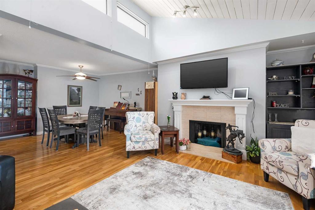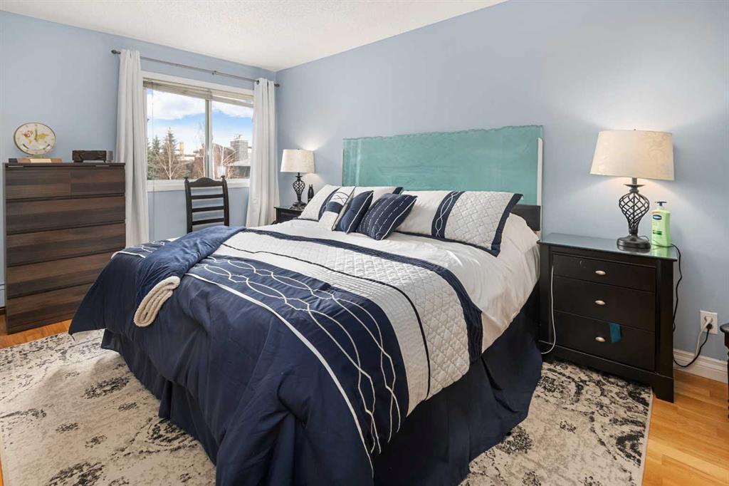 Introducing a penthouse in the highly sought-after community of Varsity Calgary, a location that perfectly blends convenience, lifestyle, and quiet comfort. Perched on the top floor, this spacious corner unit offers an impressive 1,337 sqft of living space and an abundance of natural light thanks to vaulted ceilings and eight horizontal skylight windows. Overlooking the peaceful courtyard, the east-facing balcony is the perfect place to enjoy your morning coffee. The generous kitchen is both bright and functional, featuring generous cabinetry, an electric stovetop, two mini freezers, and ample space for a breakfast nook. A large formal dining area flows seamlessly into the expansive living room, complete with a cozy fireplace, ideal for entertaining or relaxing evenings at home. The primary retreat is designed for comfort, offering a walk through closet and a spacious ensuite bathroom. A second generously sized bedroom, wide hallways, and extensive in-suite storage, including extra long hall closets to provide both practicality and flexibility. The additional full bathroom features stone countertops, a skylight, and high ceilings, enhancing the airy feel throughout. This well-managed, 25+ adult building offers exceptional amenities, including heated underground parking, a dedicated storage locker, and convenient laundry (free) facilities on every floor. Located just steps from Market Mall, you’ll enjoy easy access to shopping, dining, and everyday essentials, along with nearby parks, pathways, and transit options. Varsity is known for its mature trees, strong community feel, and proximity to the University of Calgary and the Foothills Medical Centre.
