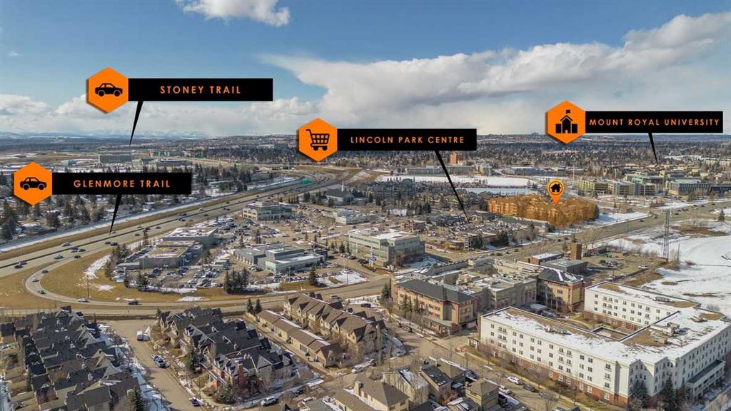 Perfect opportunity! Why rent when you can own this TOP-FLOOR CORNER UNIT w/ 2 TITLED STALLS + storage, steps from MRU! Welcome to UNIT 408 at Trafalgar House, a bright, spacious 2-BED + DEN, 2-FULL BATH condo offering +900 SQ FT of well-maintained living space. Upon entry, a generous front entry leads to a versatile bonus area that can serve as a mudroom, workspace, or cozy den with a full wardrobe closet, along with mirrored double doors concealing a standard-size washer and dryer and closet storage to keep essentials tucked away and out of sight. Just beyond, the kitchen impresses with white marbled quartz counters, ample cabinetry, and matching black appliances for a sleek, cohesive look. Island seating invites conversation while cooking and flows naturally into the dining and living areas, perfect for everyday life and when entertaining. Bright and airy, the living room is filled with plenty of natural light from the expansive windows, while a cozy gas fireplace adds warmth and charm. Step outside to the covered corner balcony, perfect for morning coffee or relaxing evenings, complete with a gas BBQ hookup for year-round grilling. The king-sized primary bedroom features a walk-through closet with custom built-ins and a private 4-piece ensuite complete with a soaker bathtub, while the second bedroom is set across the unit beside the main bath, ideal for privacy and separation when hosting guests, roommates, or family. This standout unit includes two titled heated underground parking stalls (a rare find and perk in the building) and an assigned secure storage locker, with convenient access to amenities: gym, party room, tire storage room, car wash bay, bike storage, and a landscaped courtyard retreat w/ gazebo. Located in Lincoln Park, this pet-friendly condo is minutes from major routes, transit, shops, and dining, ideal for walking, biking or casual strolls. Whether you’re a first-time home buyer, student, professional, investor, or downsizer seeking low-maintenance living, this home checks every box: the desirable blend of size, layout, and lifestyle in a top-floor gem offering greater privacy, no overhead noise, elevated views, and lasting value. Check out the online virtual tour, schedule your private showing today, and don’t miss the chance to own the spectacular Unit 408!