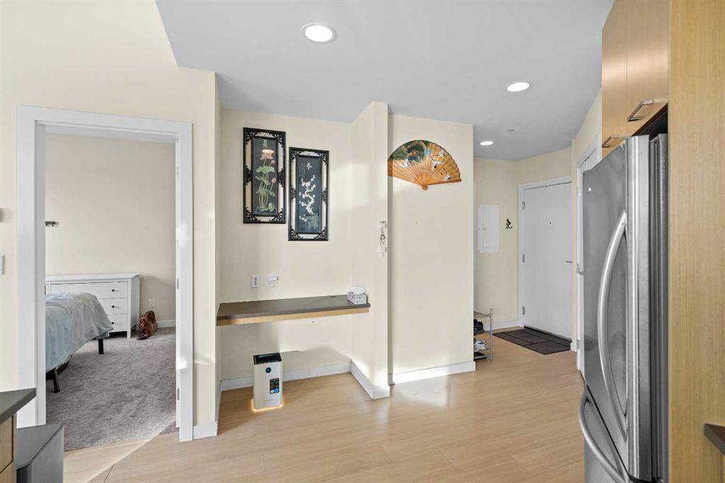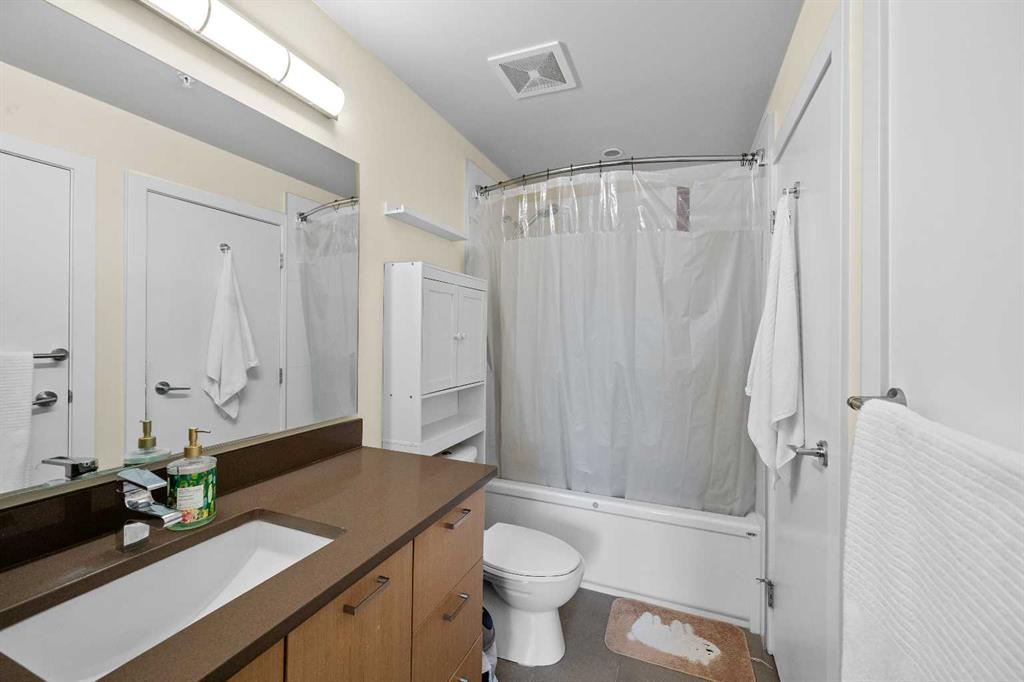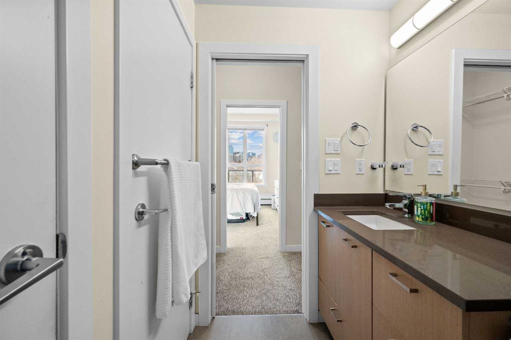 | MOTIVATED SELLER | 2 TITLED PARKING SPOTS SIDE BE SIDE | FURNITURES INCLUDES DINING TABLE SET, LIVING ROOM COUCH, TV WALL MOUNT, PORTABLE A/C, WASHROOM STORAGE CABINET, & DINING ROOM SHELF | 2024 DISHWASHER & 2024 WASHER & DRYER | Perched atop the hill between Bridgeland and Renfrew, this southwest-facing penthouse offers sweeping downtown city views through dramatic 13 foot ceilings. A rare highlight, the home includes two titled parking stalls, an exceptional feature for the building. Meticulously maintained, the unit showcases stainless steel appliances, elegant quartz countertops, full tub to ceiling tile in the bathroom, and 2023 carpet in both the bedroom and walk through closet. Renowned as one of the most functional floor plans in the development, the layout provides abundant storage, a spacious walk-through closet, and a conveniently designed bathroom with dual access from both the bedroom and main living area. The open concept kitchen, living, and dining spaces are bathed in natural light and seamlessly frame the stunning city skyline. Building amenities include two fully equipped gyms, car and dog wash stations, visitor parking, and generous bike storage offering both comfort and convenience in an unbeatable location.