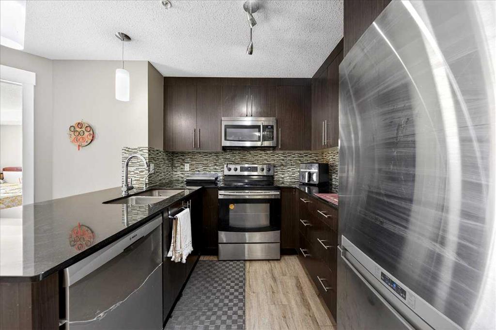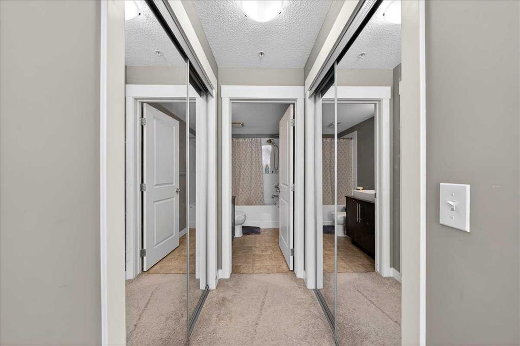 VERY NEAT AND CLEAN 2 BEDROOMS 2 FULL BATHS AND 2 TITLED PARKING[VERY RARE FIND] STALLS IN THE DESIRABLE COMMUNITY OF SKYVIEW RANCH.WONDERFULLY FUNCTIONAL LAYOUT WITH NEW STONE COUNTER TOPS WITH EATING BAR,OVERLOOKING THE LIVING ROOM WITH SUNNY SOUTH FACING VIEWS. THERE IS INSUITE LAUNDRY AND FULL STORAGE ROOM.BOTH BEDROOMS ARE GOOD SIZE,MASTER WITH HIS AND HER WALKTHROUGH CLOSET TO A PRIVATE EN-SUITE BATHROOM.2 TITLED OUTSIDE PARKING STALLS ARE INCLUDED WITH THIS UNIT[STALLS 14 AND 46].CLOSE TO ALL THE AMENITIES,LIKE BUS,SCHOOL,SHOPPING AND STONY TRAIL..VERY EASY TO SHOW,QUICK POSSESSION AVAILABLE..