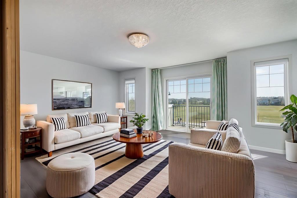 Welcome to your dream home in Auburn Bay — a fully finished, Cedarglen-built two-storey offering over 3,000 sq ft of impeccably curated living space across all three levels. Perfectly situated across from a sprawling green space and Lakeshore School in one of Calgary’s most beloved lake communities, this home masterfully blends luxury, functionality, and timeless design. Step inside to a bright, open-concept main floor where luxury vinyl plank flooring runs wall-to-wall — no carpet in sight. The chef-inspired kitchen is the heart of the home, featuring a dramatic white quartz waterfall island, full stainless steel appliance package, rich espresso cabinetry, tiled backsplash, and a corner pantry. The adjacent dining area and inviting great room, anchored by a stone-wrapped gas fireplace, offer the ideal setting for entertaining or everyday family living. A private main floor den, built-in mudroom lockers, and a stylish 2-piece bath complete the level. Upstairs, the nearly 200 sq ft primary suite is a true retreat, complete with a spa-like 5-piece ensuite and walk-in closet. Two additional bedrooms offer custom built-in closets, while a spacious 518 sq ft bonus room—complete with sliding barn doors and a private balcony—offers flexible space for a fourth bedroom, playroom, or home office. A full 4-piece bath and upper-level laundry room add thoughtful convenience. The professionally finished basement adds even more versatility, featuring spray foam insulation, upgraded subfloor, a large rec room with pot lights and wet bar (with built-in bar fridge), a stylish 4-piece bathroom with dual sinks and rainfall shower, and electrical and framing prepped for a future fourth bedroom. Outside, enjoy a private and beautifully landscaped backyard with mature cherry blossom trees, a custom pergola with roll-down privacy shades, and a gas line for your BBQ — perfect for warm summer evenings. The oversized double garage is insulated and painted, rounding out this exceptional package. Located in a premier 4-season lake community, enjoy exclusive access to paddleboarding, kayaking, swimming, skating, tennis courts, and the Auburn House facility. Minutes to schools, shopping, South Health Campus, and with a new public middle school coming soon just steps away — this is a rare opportunity not to be missed. A luxurious home. A vibrant lifestyle. Welcome to Auburn Bay.
