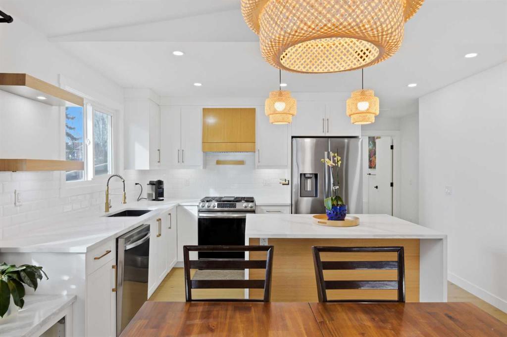 Welcome to this exceptionally renovated 4-bedroom home situated on a premium corner lot in the established community of Queensland, which is framed by mature trees adding a feeling of natural charm. Thoughtfully upgraded throughout, this home blends modern design with timeless comfort. You’ll feel the warm, inviting atmosphere the moment you step inside, highlighted by bright recessed lighting, natural Light, high vaulted ceilings, and custom in-ceiling speakers. On the main floor, the spacious primary retreat with a striking feature wall truly stands out! The spa Inspired ensuite features a walk-in glass shower, deep soaker tub, a double vanity with elegant finishes and a dream walk-in closet. Paired with a second bedroom and a seamless flow from the kitchen to the living room, which is filled with bright south-facing sunlight. The fully developed lower level creates the perfect gathering space, complete with a stylish wet bar and cozy lounge area ideal for hosting family & friends. Finishing off the basement with 2 full bedrooms, laundry and storage. Step outside to your covered outdoor oasis, a peaceful extension of the home- perfect for enjoying Calgary’s summer evenings. The expansive corner lot provides additional yard space for recreation and outdoor living, all enclosed by a brand-new fully fenced backyard with an oversized double gate for easy trailer or small equipment access. The home’s exterior showcases Hardie board siding, providing exceptional durability along with a clean, upscale aesthetics designed to stand the test of time. Inside all major appliances, drywall, windows, spray foam insulation, HVAC, hot water tank, plumbing pipes, electrical wiring, and roof have been updated within the past two years offering peace of mind and modern efficiency. Those hot Alberta summers are no match for the recently installed central AC! Families, car enthusiasts and hobbyists will appreciate the rare garage configuration that offer's a double oversized detached garage plus a single attached garage, both featuring durable epoxy floors. The single attached garage offer's the added convenience of a functional boot room entry into the home. With its proximity located just a short walk from a dog park, Fish Creek Provincial Park, schools, pathways and everyday amenities, this home delivers the perfect balance of nature, convenience, and refined living in one of Calgary’s most welcoming communities. Beautifully upgraded, perfectly located, and thoughtfully designed, this is a rare opportunity to own a truly standout home in Queensland.