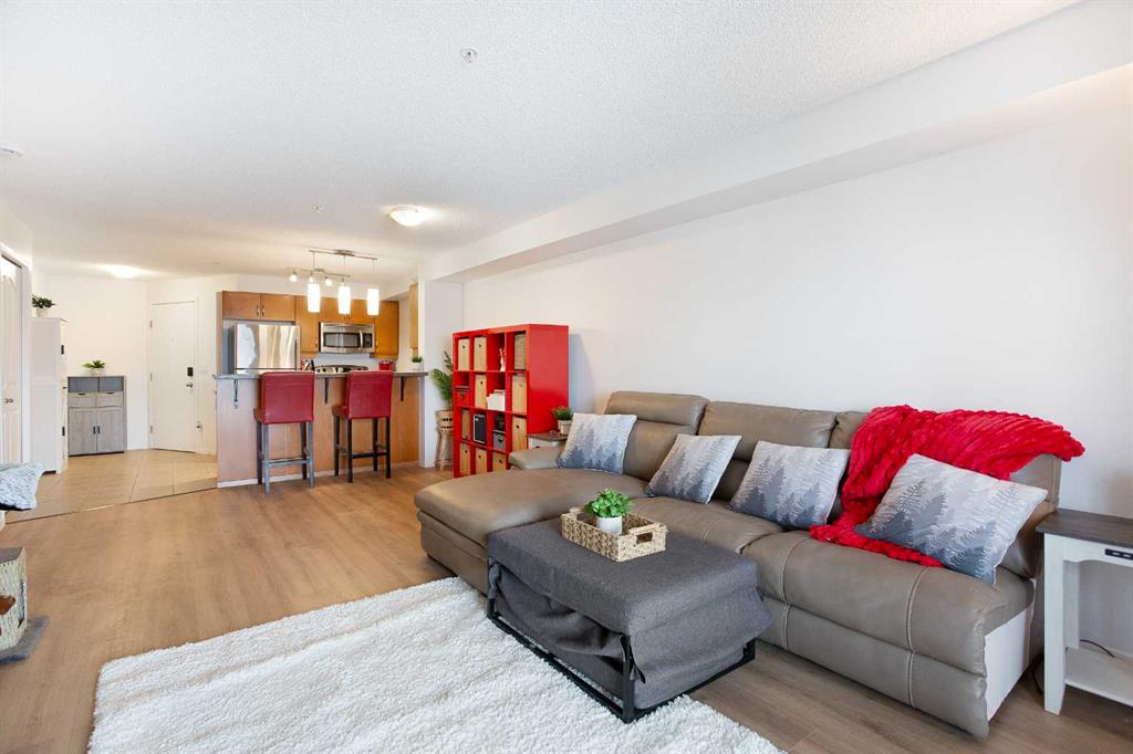 Bright 678 sq ft 1 bedroom condo in Panorama Hills with west-facing balcony and electricity included in condo fees. Fresh paint and new flooring throughout, this move-in ready third-floor unit is ideal for first-time buyers, downsizers, or investors. The open-concept layout offers a bright and functional living space, featuring maple kitchen cabinets, granite countertops, stainless steel appliances, and a breakfast bar. The west-facing balcony brings in great natural light and is perfect for enjoying afternoon sun. The spacious primary bedroom includes ample closet space, and the four-piece bathroom is finished with tile flooring and granite accents. In-suite LG washer and dryer (just over a year old) adds everyday convenience. Located in a well-maintained, cat-friendly building, this unit also includes an assigned above-ground parking stall with plug-in. Close to shopping, parks, public transit, and with quick access to Stoney Trail, Deerfoot Trail, and other major routes.