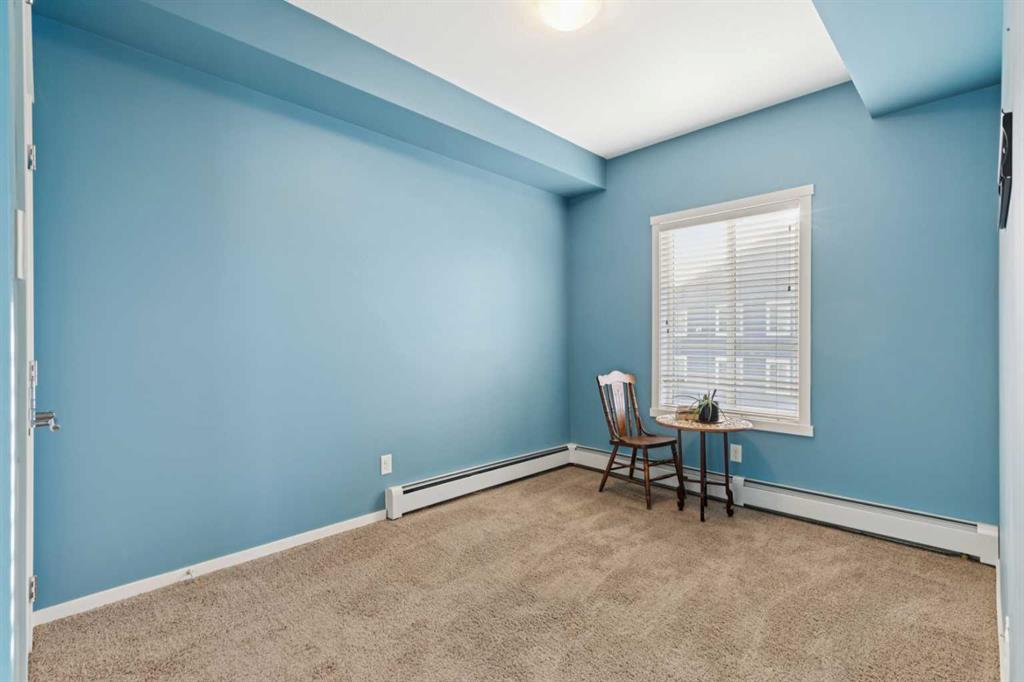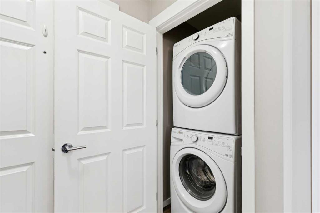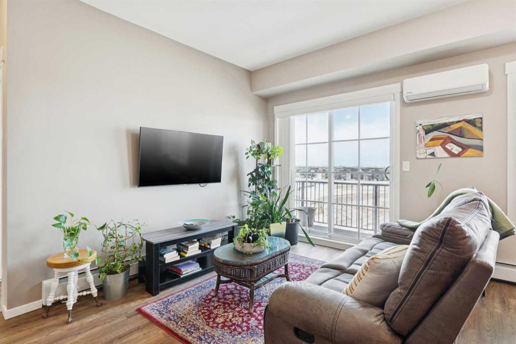 Stunning top-floor corner unit offering unobstructed west-facing views of the mountains, city skyline, and ravine/green space. This immaculate 811 sq. ft. 2-bedroom, 2-bathroom condo features an open-concept layout with 9-foot ceilings and expansive windows that flood the home with natural light. The kitchen is beautifully appointed with quartz countertops, an undermount sink, full-height subway tile backsplash, upgraded stainless steel appliances, 42” upper cabinets, pantry, and a sit-up breakfast bar. Luxury vinyl plank flooring flows throughout the main living areas, complemented by upgraded lighting and plumbing fixtures. The spacious living and dining area opens to a west-facing balcony with a gas BBQ line, panoramic views, overlooking the ravine and walking paths. Perfect for relaxing sunsets and outdoor enjoyment. The primary bedroom showcases ravine views and includes a 3-piece ensuite with a walk-in shower featuring a corner bench, stone countertop vanity, tile flooring, and an upgraded ceiling fan with remote. The second bedroom is generously sized with a deep closet and easy access to the 4-piece main bathroom, also finished with tile flooring and stone countertops. Additional highlights include central air conditioning, in-suite laundry, a large welcoming entry, titled underground heated parking, and an assigned storage unit. Located in the desirable community of Copperfield, with quick access to Stoney Trail and Deerfoot Trail, plus nearby shopping, restaurants, schools, parks, public transit, and extensive walking paths. Pride of ownership is evident—this unit shows exceptionally well.