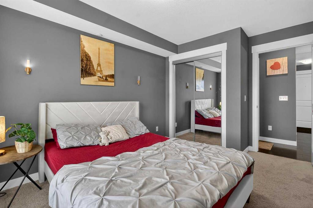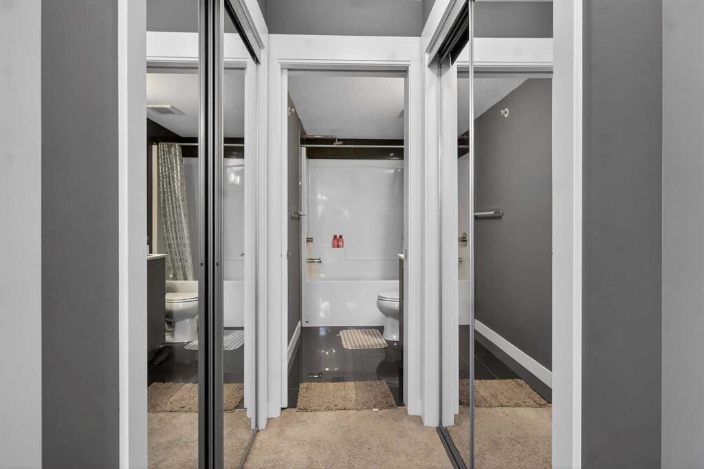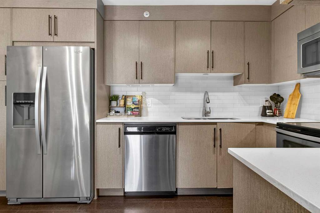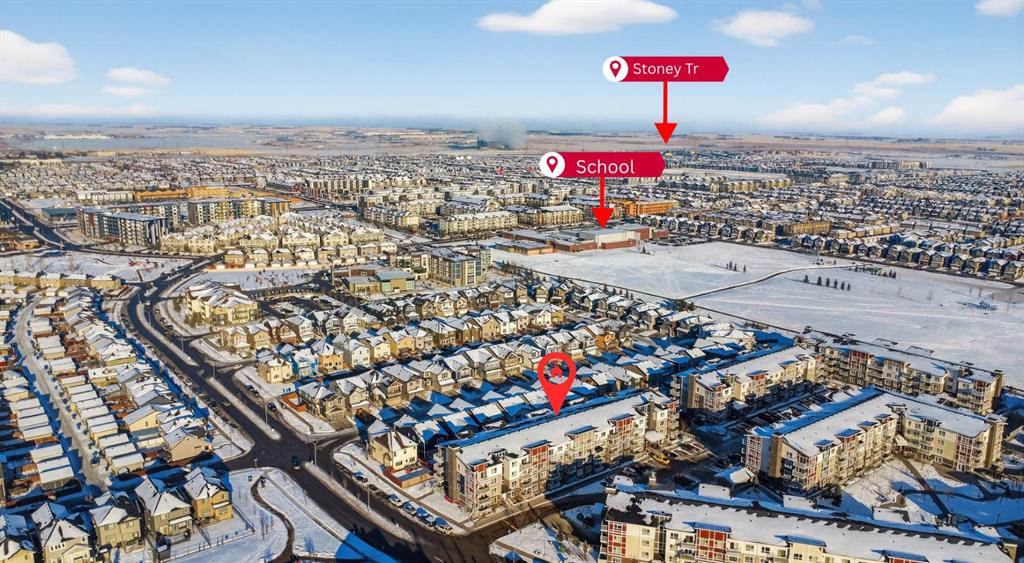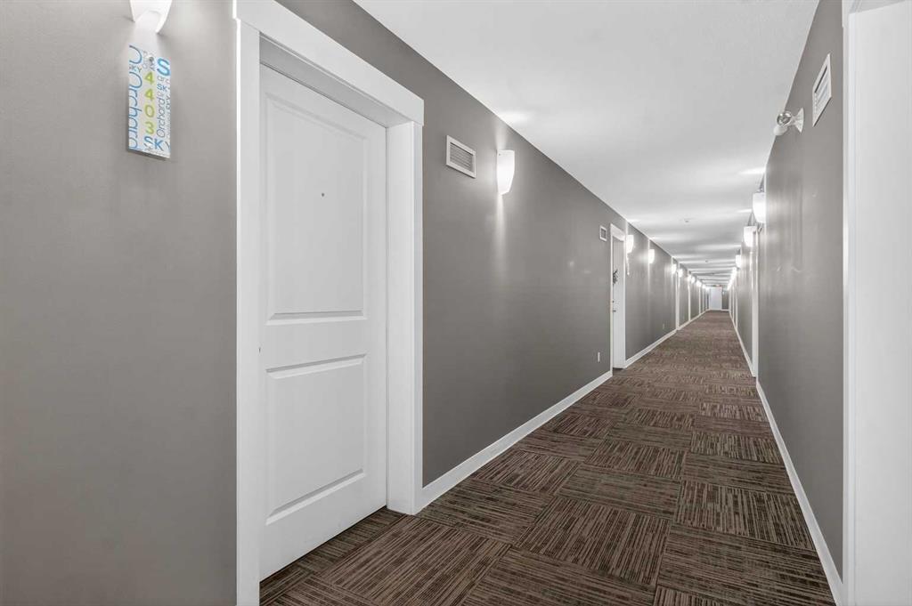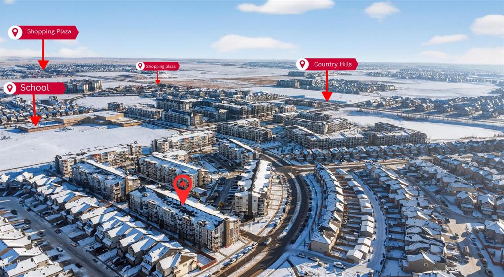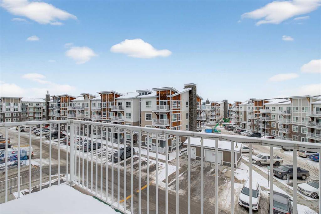Welcome to this incredibly bright and spacious 818-sq-ft unit in a family-friendly community! This thoughtfully curated 2 – bedroom, 2–bathroom top–floor unit in Skyview Ranch blends style and substance effortlessly, with every room crafted for comfort, natural light, and connection. Morning sunshine streams through the patio doors, bathing the open-concept living area in a gentle glow. From the living room, sliding glass doors usher you onto a generous balcony overlooking the mountains, where you can savor outdoor meals all summer long. The spacious kitchen, framed with full-height cabinetry and refined finishes, feels both grounded and welcoming, including quartz countertops, stainless steel appliances, in-suite laundry, cork flooring, and carpet. A modern light fixture anchors the dining area, perfectly centering your dining table. A built-in desk area is nestled between the dining and living rooms, offering a convenient place for remote work or school assignments. Both bedrooms are ample and finished with luxurious carpeting. The primary bedroom boasts a walk-through closet that opens into a private 4-piece ensuite with a tub/shower combo. The second large bedroom on the far side of the unit is served by an adjacent 4-piece bath. The in-suite laundry is a welcome convenience and provides sufficient storage. This condo also includes the convenience of a titled underground parking stall, along with an additional storage locker located in front of the stall, perfect for seasonal items. As a resident of Skyview Ranch, you’ll enjoy an unbeatable lifestyle with access to schools, shopping, restaurants, parks, and excellent transportation routes, making commuting easy. With quick access to Stoney Trail, Deerfoot Trail, CrossIron Mills, Amazon shipping depot, and The Airport. You’ll be well-connected to go anywhere you want to explore. Schedule your showing today!