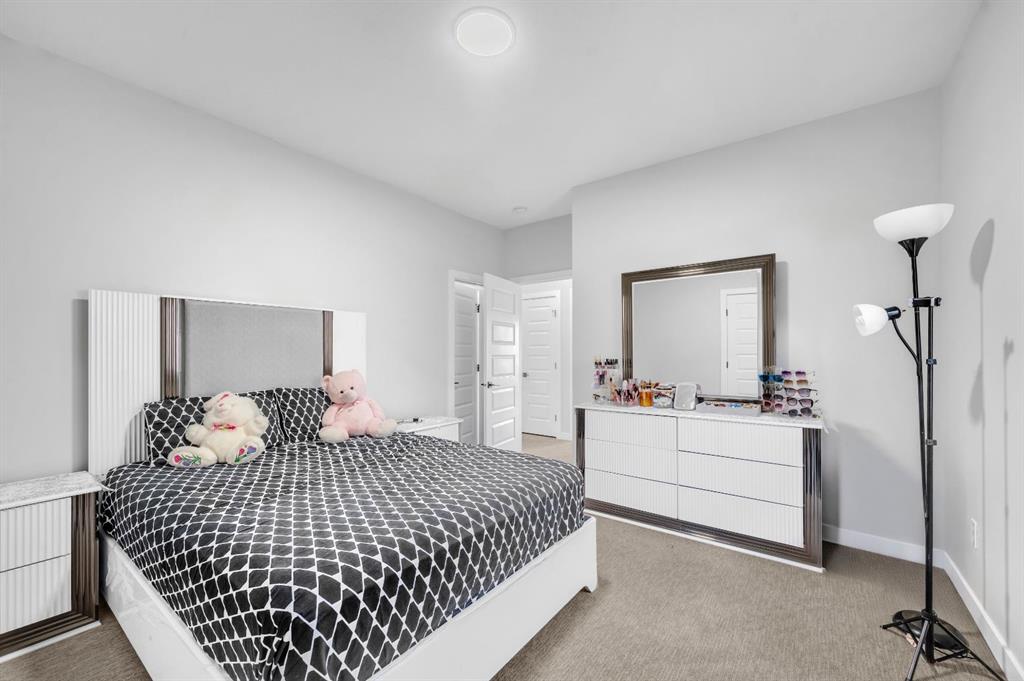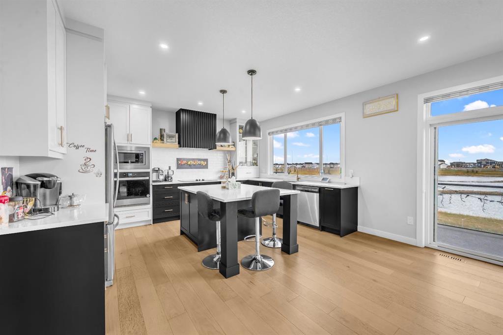 Discover an unparalleled level of luxury in this extraordinary two-storey with a walk-out basement, perfectly positioned to capture serene, panoramic views of the pond. Boasting over 3,100 sq. ft. of refined living space and a triple car garage, this residence blends architectural sophistication with premium comfort. The main level exudes elegance from the moment you step inside. Towering ceilings, expansive windows, and an abundance of natural light set the tone for elevated living. A versatile main floor bedroom or executive office is paired with a full bathroom, offering exceptional convenience for guests. The gourmet kitchen is a true showpiece, featuring striking two-tone custom cabinetry, a generous island, built-in premium appliances, and a fully outfitted spice kitchen for seamless entertaining. The dining area flows effortlessly into the grand family room, where a stunning open-to-above design and a contemporary fireplace create an ambiance of warmth and sophistication. From here, step onto the full-width elevated deck, the perfect vantage point to enjoy the views year round. The upper level continues to impress with four beautifully appointed bedrooms, including two opulent primary suites. The main primary retreat offers a spa-inspired ensuite complete with luxurious finishes and an expansive walk-in closet. A spacious and airy loft overlooks the living room below, providing a versatile lounge or relaxation space. The walk-out basement (Illegal) opens directly to the picturesque pond, offering a rare and private natural backdrop ideal for creating a future entertainment haven or personal sanctuary. A masterfully crafted home that embodies elegance, functionality, and an exclusive waterfront lifestyle. Indulge in the luxury you deserve book your private showing today.
