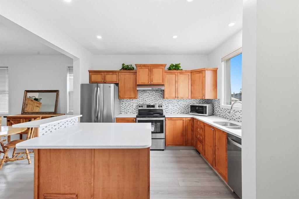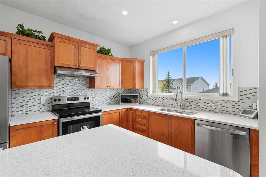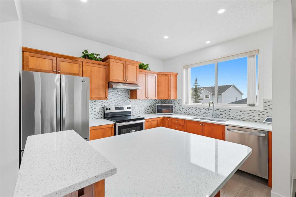 Welcome to this recently updated 4-bedroom duplex with double garage, ideally located on a quiet street, near playgrounds and schools like Nose Creek School (6-9) and North Trail High School (10-12). This move-in-ready home includes a fully developed basement, complete with a large storage area, wet bar, flex space, and a fourth bedroom. Add a spacious double garage to complete this home, helping protect your vehicles from the elements. Inside, you’ll find recent updates throughout, including new carpet upstairs (2024), and freshly painted upstairs, main and downstairs(2025). The home also features a new LG dishwasher (2024), LG washer and dryer (2024), plus the owners replaced the roof, siding and eavestroughs (2024). This home is designed for a family, located perfectly between schools, playgrounds and even the community garden. Conveniently close to Stoney Trail and Deerfoot, making it easy to get around. Your new home is within walking distance from the Calgary Stampede Express, direct transit for your downtown commute. Shopping, dining, and recreation are all within minutes with VIVO Recreation Centre, complete with two NHL-size rinks, fitness centre, pool and indoor play area, Country Hills Shopping Centre or drive 10 minutes to shop at CrossIron Mills or Deerfoot City. Choose from multiple schools including North Trail High School (10-12), Nose Creek School (6-9), Country Hills School (K-5), or St. Clare School (K-6). Stylish, practical, and move-in-ready — this home is made for families looking for the perfect home.