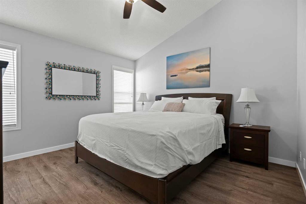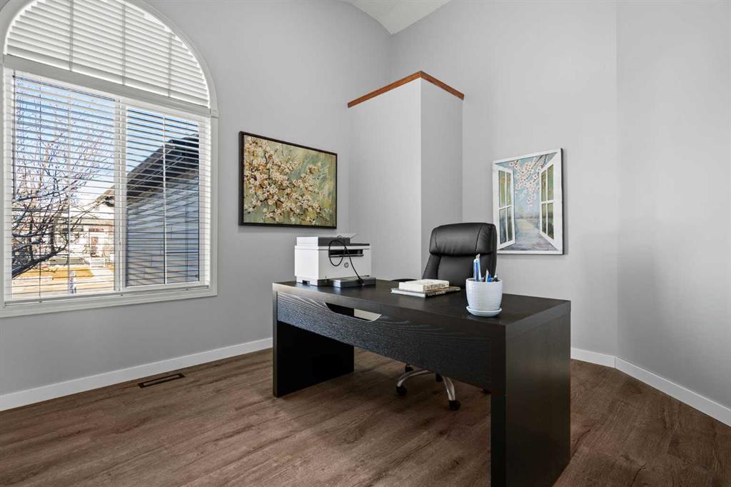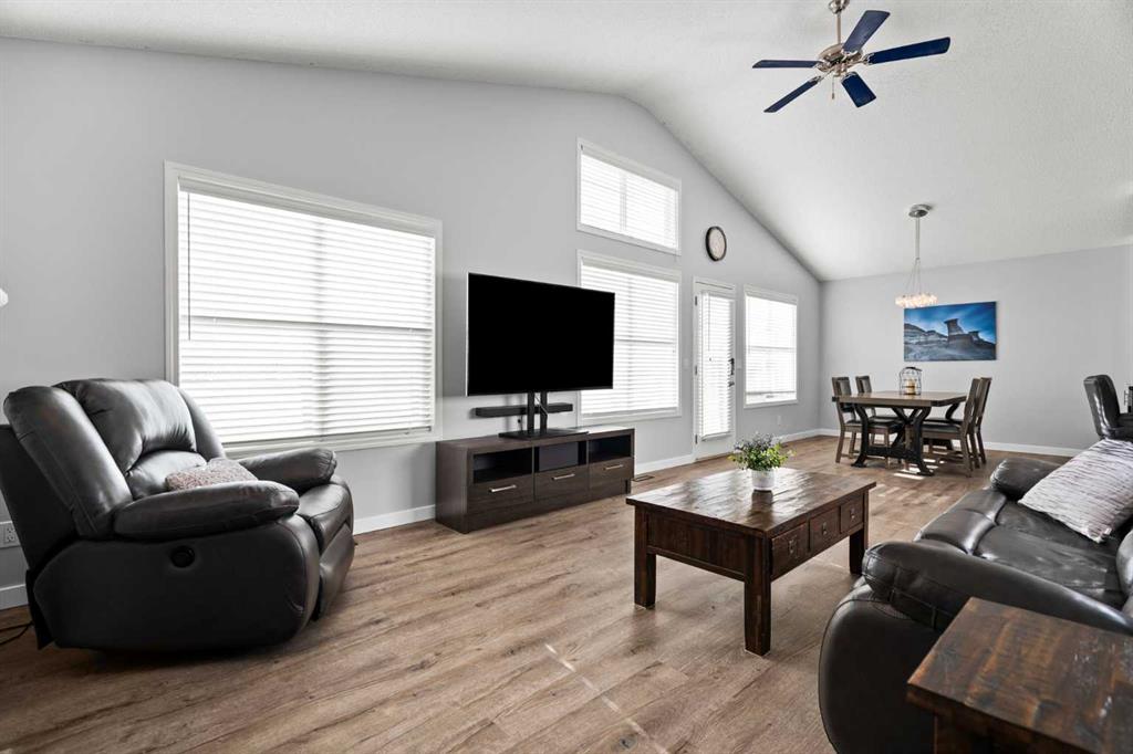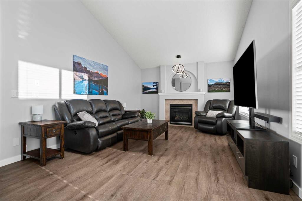 Welcome home to this impressive bungalow featuring a fully developed lower level and an oversized double attached garage. Showcasing more than $40,000 in recent upgrades, this property is perfectly situated on a peaceful close and offers a sunny south-facing backyard complete with a new COMPOSITE DECK—ideal for relaxing or entertaining. Inside, you’ll love the bright, open layout highlighted by VAULTED CEILINGS that span the entire main floor. The kitchen is both spacious and functional, offering abundant cabinetry, QUARTZ countertops, STAINLESS STEEL appliances, a convenient pantry, and a breakfast bar. The large dining nook includes custom built-in storage, perfect for barware, serving dishes, or seasonal décor. The inviting great room features a cozy GAS FIREPLACE and large windows that flood the space with natural light, along with direct access to the backyard. The primary suite is generous in size and includes a walk-in closet and a private ensuite with a skylight. A large main-floor den provides an excellent home office option or can serve as a second bedroom. The fully developed lower level is designed for versatility, offering a massive family room with updated vinyl plank flooring, a wet bar, two spacious bedrooms, and a full 4-piece bathroom. Recent upgrades include: Furnace (2020) Hot water tank (2019) Asphalt roof (2020) Siding, exterior paint & soft metals (2022) Composite deck (2021) The yard is fully fenced and professionally landscaped, making this home truly move-in ready.