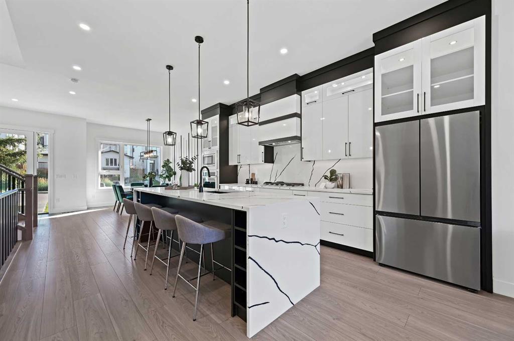 Welcome to an amazing inner city location offering a brand new semi-detached masterpiece, built and crafted by a small quality builder!! This is a very exclusive location, unveiling wonderful south river valley escarpment views from the new "Transitional Styled" and open floor plan which will be sure to please the most discriminating buyers. The fully developed walk-out two story encompasses 2,900 sqft of total living space, featuring a total of four bedrooms, three and half baths, 10ft ceilings, floor to ceiling two tone luxurious kitchen cabinets and a stunning waterfall quartz center island. The main floor family room has a stylish linear fireplace and walk-out to a large 20ft wide south balcony. The upper level includes three good sized bedrooms, 4-pce bathroom, a quiet sitting/gathering room c/w media outlets and an amazing primary bedroom retreat. The primary bedroom offers picturesque south river valley views and from the spa like 5-pce ensuite, including a floor to ceiling tiled shower and a separate soaking tub. Conveniently located upstairs is a spacious laundry room and separate laundry sink. The fully developed and bright walk-out level promotes the fourth bedroom, another 4-pce bath, a gorgeous wet bar in the games room and patio doors to a large south and private poured concrete patio. The detached double garage is equipped with an electric car plug-in and media outlets. The house temperature is maintained by a central air conditioner. Excellent location on a very quiet street just steps to the Bow river and the Bow river bike path system. The U of C and Market Mall are only a couple minutes away, a short commute to downtown and easy access west to the mountains. The other side 5009 21st Avenue is sold! Hurry on this one!