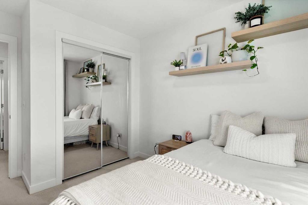 Welcome to this beautifully upgraded townhome in the vibrant, family-friendly community of Carrington. Living here means you can grab your morning coffee at the nearby plaza, take a jog or bike ride on one of the many trail systems, or enjoy a quick commute downtown or out to the mountains on weekends. This thoughtfully designed four-bedroom, two-and-a-half-bathroom townhome offers 1,675 square feet of Air-Conditioned living space incorporating both modernized style and practicality. As you enter, you are greeted by a versatile main-floor bedroom that can serve as a private home office, fitness room, or guest suite. The attached & drywalled double garage not only provides secure parking it is complimented with a convenient water tap, perfect for keeping your car spotless year-round or rinsing off sports gear. Upstairs, the bright & spacious open-concept second level is ideal for entertaining and everyday living. Large windows fill the space with natural light, highlighting the stylish finishes and upgraded details throughout. The spacious kitchen is a chef’s dream, featuring a central island with seating, upgraded quartz countertops, a premium stainless steel appliance package, and plenty of cabinetry and storage solutions. Adjacent to the kitchen is the generously sized dining area creating a warm, welcoming space to gather, perfect for hosting dinner parties with family and friends. Designed for both comfort and sophistication, the living room creates a gathering place to enjoy the latest film release or cheer on your team, then step out to the balcony which is an ideal spot to sip a glass of wine at sunset or enjoy a quiet morning coffee. Completing this level is the private 2-piece powder room. The upper level is thoughtfully designed to be a quiet retreat from the bustle of daily life, with three well-proportioned bedrooms that offer space for everyone. The spacious primary suite feels like your own personal sanctuary, complete with a walk-in closet to keep life organized and a private four-piece spa-inspired ensuite where you can truly unwind. This is a place to recharge, whether that means cozying up with a book, getting ready for a night out, or simply taking a moment for yourself. Two additional bedrooms provide the flexibility to create a children’s wing, a dedicated home office, or a guest room. The second full bathroom makes busy mornings smooth and stress-free, while the conveniently located laundry area keeps chores efficient and out of sight. Outside, residents of this well-managed complex enjoy a beautifully landscaped courtyard, plenty of visitor, street parking, and a welcoming community feel. Carrington has an increasing selection of shops, restaurants, and services just steps away, and plans for future schools and even an LRT stop. Whether you are a growing family, a busy professional, investor, or someone looking for a low-maintenance lifestyle with room to host and entertain, this townhome is the perfect blend of comfort, style, and community.