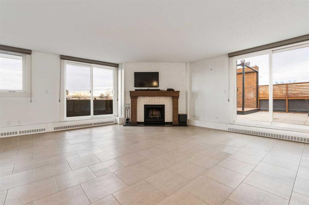 Welcome to an extraordinary top-floor retreat where refined indoor living meets unmatched outdoor space. Situated in a quiet concrete building, this impressive 1,500+ sq. ft. 2 bedroom, 2 bathroom home is finished to an exceptional standard throughout. The heart of the home is a custom Martha Stewart Living island kitchen, complete with stone countertops and premium Electrolux and Bosch appliances. It is very rare to find a custom kitchen of this size and quality! Beautiful appointed from top to bottom. It then flows seamlessly into a bright, open great room anchored by a cozy wood-burning fireplace. The space is very spacious with room for an additional library or seating area. Updated bathrooms, luxury vinyl tile and ceramic flooring, custom built-ins, double closets, and a large in-suite laundry room with abundant storage elevate everyday living. All of this as well as a very spacious office or studio space, solarium style with built-in, bench seating and a wall of windows. Mostly newer windows with custom blinds allow natural light to pour in from every angle. Step outside through two smooth-slide patio doors to a truly rare offering: a 700 sq. ft. penthouse-style wraparound rooftop patio. Designed for privacy and enjoyment, this outdoor oasis features a raised 24’ x 24’ deck with new wood feature walls. There is more unique spaces for dining, lounging or gardening! This patio is ideal for entertaining, BBQs, outdoor workouts, or simply relaxing while taking in sweeping southern sky views. Enjoy an easy-care executive lifestyle with two heated indoor parking stalls, a well-equipped fitness facility with sauna. Perfectly positioned on a peaceful, tree-lined street in the heart of revitalized Windsor Park, just steps to LRT, transit, Chinook Centre, shops, and restaurants. A short bike ride to Stanley Park, the Reservoir, and Elbow River pathways, and only 10 minutes to downtown. Condo fees include heat, water, and sewer. Immaculate, move-in ready, and truly one of a kind—this is elevated inner-city living at its finest.