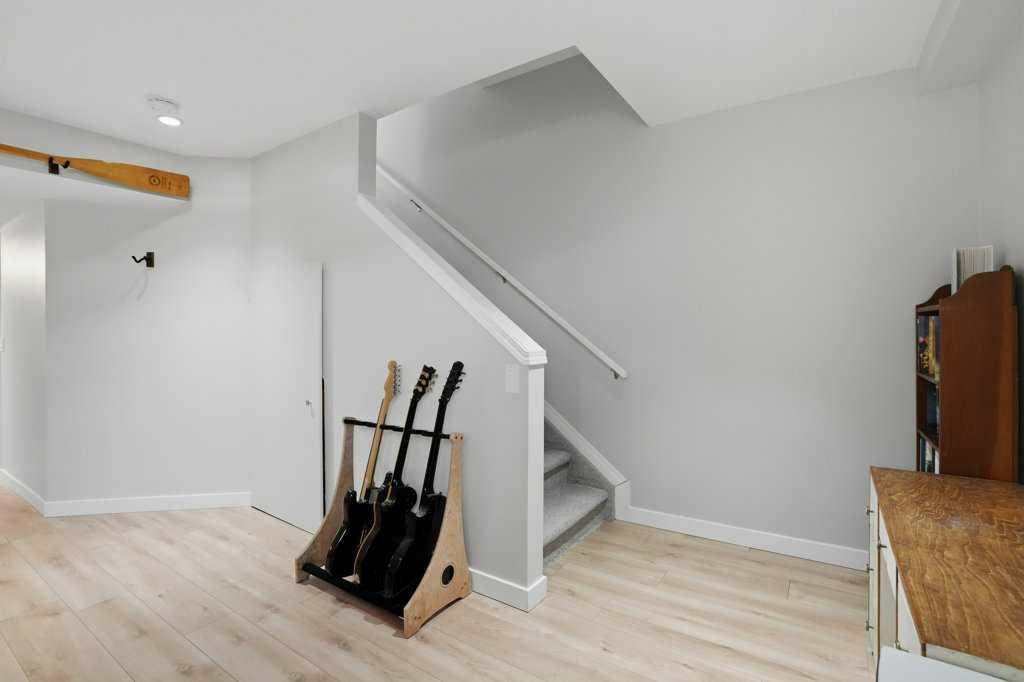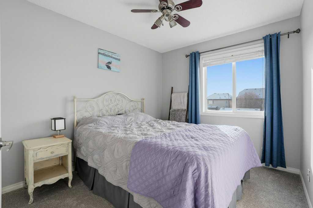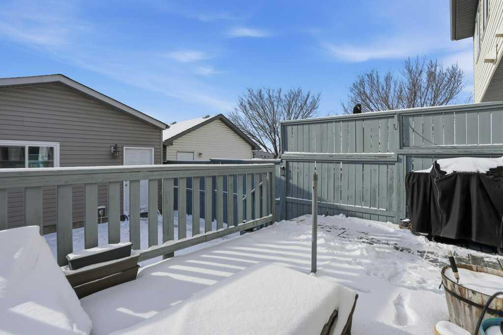 Welcome to this beautifully maintained 3-bedroom, 3-bathroom semi-detached home in the heart of McKenzie Towne, located right next to a large green space and just steps from the pond and walking paths. Featuring a new roof (2026), a finished basement, double detached garage, and a sunny south-facing backyard, this home offers both comfort and functionality. The main floor welcomes you with a spacious living room facing a cozy gas fireplace. Toward the rear of the home, the renovated kitchen features white quartz countertops, stainless steel appliances, and modern grey cabinetry. The dining area is filled with natural light from large bay windows overlooking the south-facing backyard. A practical mudroom with a built-in closet organizer and a 2-piece powder room complete this level, which features hardwood flooring throughout. Upstairs you’ll find three bedrooms and a full bathroom, including a spacious primary bedroom with a walk-in closet. The freshly renovated basement offers a large rec room with an egress window, built-in Sony ceiling speakers, a full bathroom with quartz countertops and a glass shower, along with plenty of storage space. Outside, enjoy the fully fenced south-facing backyard with a deck featuring privacy fencing and a convenient BBQ gas line. The double detached garage is insulated, drywalled, and painted, and features an oversized door, ideal for truck owners, with access from the paved back lane.