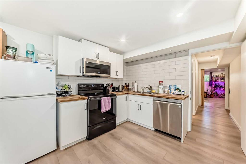 This half duplex is a fantastic opportunity for investors, first-time buyers, or anyone looking for a flexible property with great income potential. Whether you choose to rent out the whole place or live upstairs and rent down, this home offers a smart, move-in-ready setup with plenty of recent upgrades and thoughtful updates throughout. The majority of the renovations were completed in 2020, including the addition of the illegal basement suite, along with new kitchens and bathrooms on both levels, updated flooring, and all new windows. These updates were done with practicality and comfort in mind, making this property an easy one to own without having to worry about major expenses anytime soon. The upper unit features a bright and spacious layout with two good-sized bedrooms and a full four-piece bathroom. The kitchen offers plenty of cabinet space and opens nicely to a large dining area, creating a great setup for everyday living. The living room feels warm and inviting with a corner wood-burning fireplace, perfect for Calgary winters, and easy access to the recently rebuilt composite deck and balcony where you can enjoy your morning coffee or relax in the evening sun. Downstairs, the illegal basement suite has its own private rear entrance and includes one huge bedroom, a full kitchen, a comfortable living area, and a modern bathroom. It's a great space for extended family, guests, or as a reliable income steam. Out back, there is parking for 3 vehicles plus a storage shed for tools and seasonal items. The property is located on a tree lined street close to shopping, schools, parks, and public transit, making it convenient for both tenants and owners. With all the heavy lifting already done, this home is a low-maintenance option that works well for a variety of buyers. Whether you are adding to your investment portfolio or looking for an affordable way to get into the market, this one is worth a look. Come see it for yourself and appreciate the updates, layout, and flexibility this property offers.