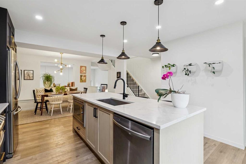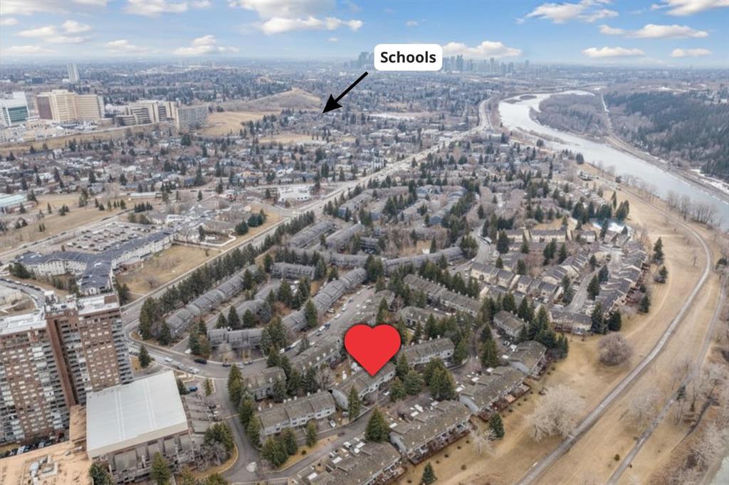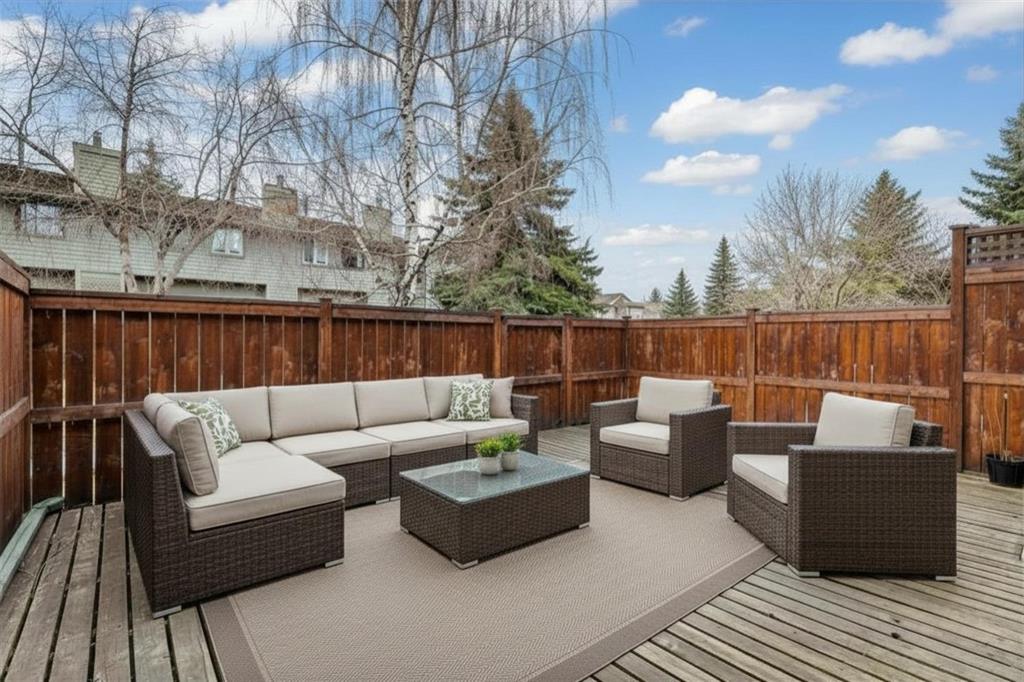 Completely renovated from top to bottom, this high-quality, stylish townhouse offers a rare blend of modern design, thoughtful upgrades, and an unbeatable location with greenspace behind and just one row from the scenic pathways of the Bow River. Featuring a single attached garage with brand-new epoxy flooring and a driveway, this home has been refreshed throughout, including all new windows, creating a truly move-in ready experience. Inside, the main level impresses with a dramatic 2-storey ceiling in the living room, anchored by a cozy gas fireplace and finished with durable LVP flooring, while patio doors lead to a private, FULLY FENCED BACKYARD. The adjacent kitchen and dining area are equally striking, showcasing beautiful updates with a large island with breakfast bar, stainless steel appliances including an oven that has barely been used, stone countertops and backsplash, custom cabinetry, floating open shelves, a large walk-in pantry, and a charming bay window with café-style seating, perfect for morning coffee or a work-from-home nook. The dining space features a custom built-in bench, adding both style and function. Also on this level, the show-stopping half bathroom is beautifully finished with tile flooring, granite countertops, bold black walls, and unique, modern design details with updated fixtures throughout. Upstairs, you will find 3 well-sized bedrooms and 2 full bathrooms, including a spacious primary retreat with a large walk-in closet complete with built-ins, new window coverings, and a private, treed outlook with mature evergreens. The ensuite offers double sinks, granite counters, tile flooring, and a large, gorgeous tiled shower, while the secondary bathroom includes a tub/shower combo and granite countertops. The fully finished basement extends your living space with LVP flooring, laundry, a flex room, and convenient under-stair storage. A welcoming front patio sitting area adds to the home’s charm, while the surrounding community offers a unique, nature-filled setting with mature trees throughout, easy access to downtown, the Children’s Hospital, the Foothills Hospital, and quick routes west to the mountains - making this an exceptional opportunity for those seeking both lifestyle and location. The maintenance fees are some of the lowest in the neighbourhood!