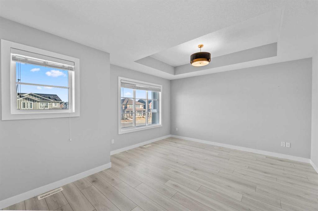 Nestled on a quiet, family-friendly street in the sought-after community of Cornerstone, this beautiful home offers both comfort and convenience—just minutes from shopping and essential amenities. Featuring two spacious primary bedrooms, this property is ideal for first-time homebuyers, investors, or young families. The home boasts high-end upgrades throughout, including premium cabinetry, modern appliances, luxury vinyl plank flooring, and oversized windows that fill every room with natural light. A separate side entrance leads to the fully developed basement suite (illegal), featuring extended-height ceilings for an open and airy feel. Outside, extensive concrete work provides low-maintenance living and inviting outdoor spaces perfect for relaxation or entertaining. The double detached garage offers ample storage and convenience during the winter months. This home truly needs to be seen to be appreciated—book your private showing today!