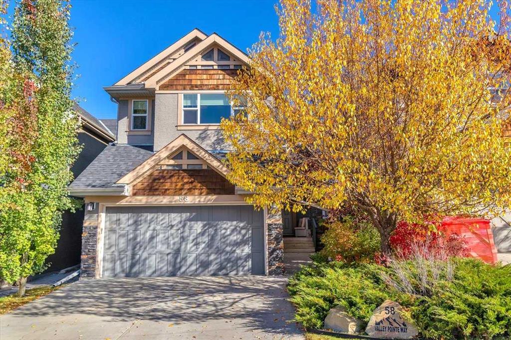 This meticulously cared for home is located in Valley Pointe Estates within the desirable golf course community of Valley Ridge. Situated on a quiet child friendly street and BACKING ONTO A GREEN SPACE - this property is perfect for families. The open kitchen is beautiful and has an abundance of cabinetry and counter space, complemented by high end appliances including a stove (2024), fridge (2019) and Bosch dishwasher (2025). The kitchen is further enhanced by granite countertops, an island featuring built-in wine storage, roughed in for gas stove and a large walk-in pantry, making it ideal for both meal preparation and entertaining. Adjacent to the kitchen, the spacious eating area has a garden door that leads out to a tiered deck. Here, you can unwind under a cozy pergola and enjoy the privacy of a fully fenced backyard, perfect for outdoor gatherings, play, and relaxation. Upstairs features three great sized bedrooms and a spacious bonus room with VAULTED CEILINGS and lots of windows. The king sized primary bedroom is approx. 14' x 14' and has a relaxing ensuite with a corner soaker tub and separate shower. This home also has a newer washer and dryer, new roof in 2025, central air and an irrigation system. NOTHING TO DO BUT MOVE IN and enjoy quick easy access to schools, downtown, the mountains, The Farmer's Market and all conveniences.