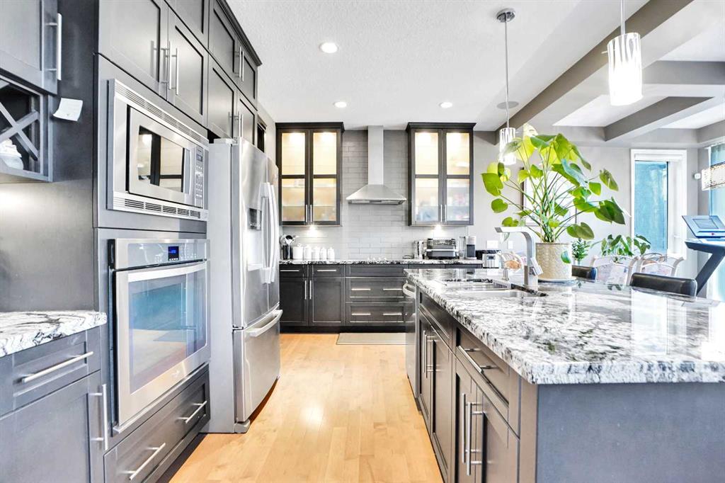 Welcome to your dream home — a meticulously maintained 4-bedroom, 3.5-bathroom sanctuary nestled in a peaceful cul-de-sac in one of the city’s most sought-after neighbourhood of Cranston. This impressive property offers over 2,424 sq ft of luxurious living space, thoughtfully designed for both comfort and style. Step inside and be greeted by soaring high ceilings and an abundance of natural light that pours through large windows, creating a bright and inviting atmosphere. The chef’s kitchen is a true showstopper —featuring built-in stainless steel appliances, granite countertops, custom cabinetry, and a spacious island perfect for entertaining or family gatherings. The open-concept main floor flows seamlessly into the elegant living and dining areas, anchored by a cozy fireplace. Upstairs, you’ll find a spacious primary suite with a spa-like ensuite and walk-in closet, along with two additional generously sized bedrooms and a full bath. Downstairs, the fully finished walk-out basement is an entertainer’s dream. Enjoy a custom wet bar, a large recreation space, an additional bedroom, and a full bath — perfect for guests or multi- generational living. Step outside to a beautifully landscaped backyard that opens directly from the lower level, offering privacy and plenty of space to relax or entertain. This home truly has it all — space, luxury, functionality, and a prime location. Don’t miss your chance to make it yours! Book a Showing today!