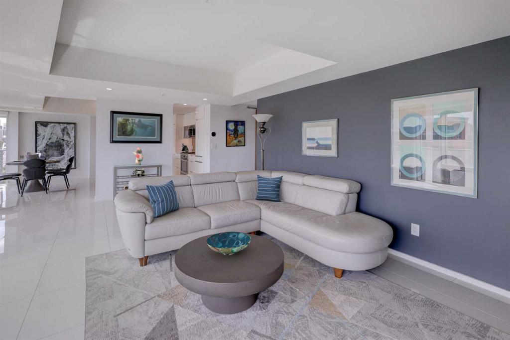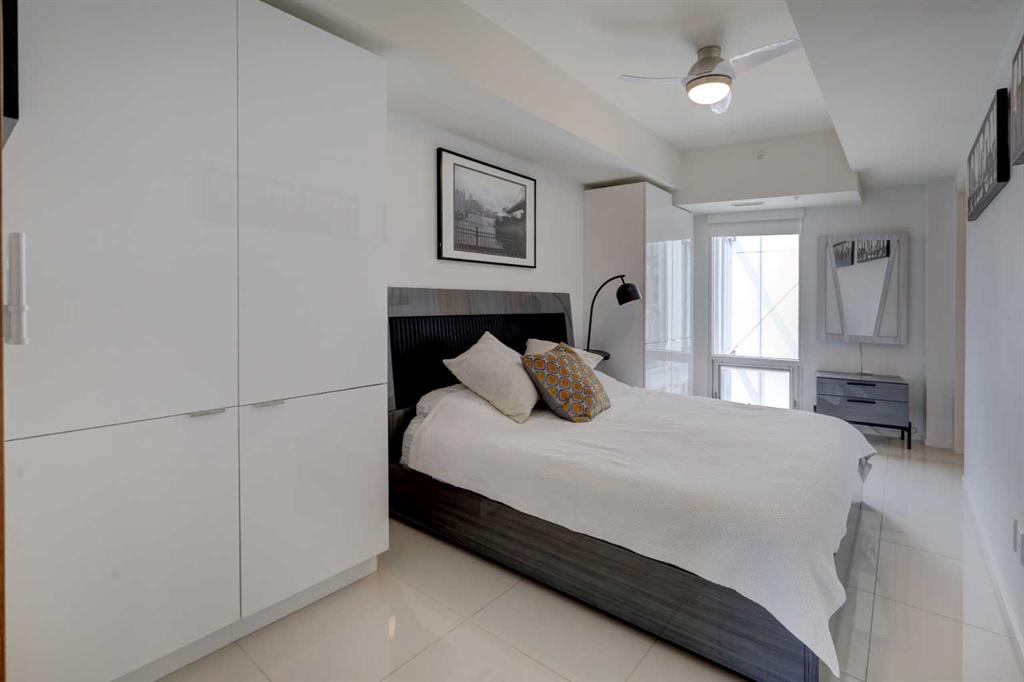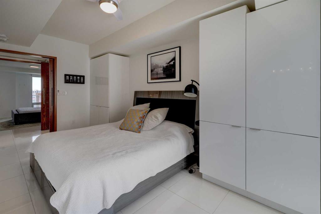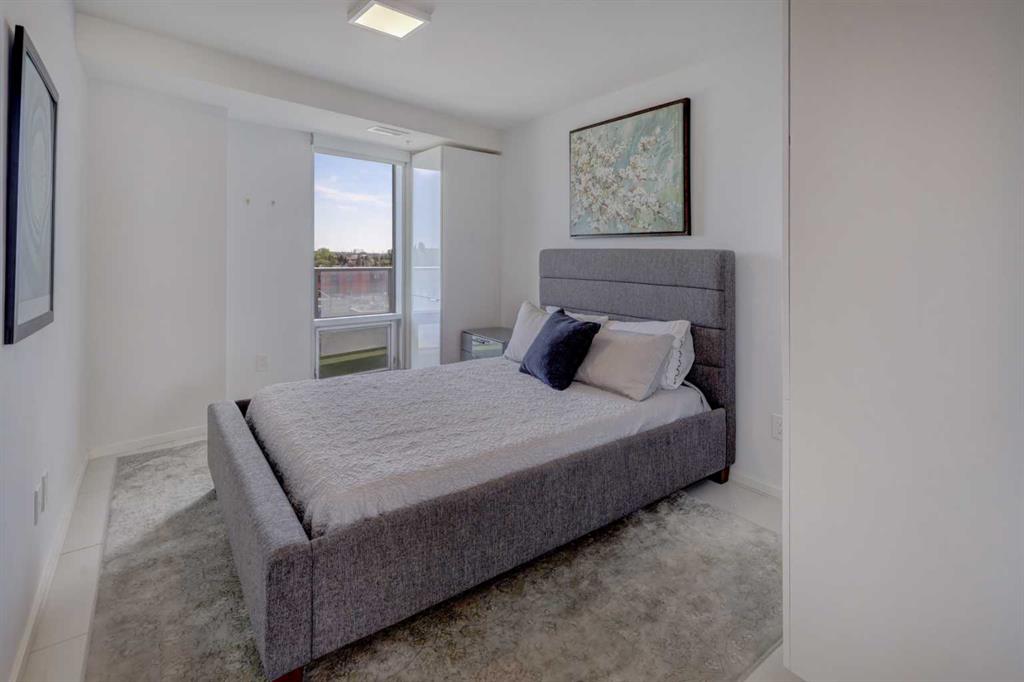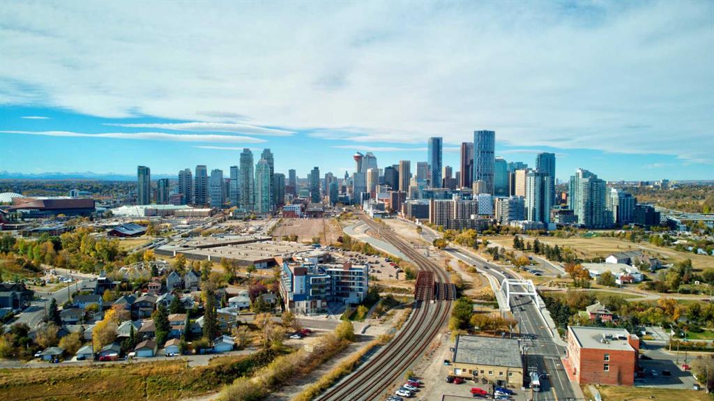 Welcome to unit 601, a stylish 1250+ sq ft sub-penthouse in the modern Avli On Atlantic- a very sleek building in historic Inglewood, steps to great shopping, excellent restaurants, cool pubs and an easy walk to the Bow Valley pathways, Fort Calgary,The Saddledome and downtown. This large 2 bedroom, 2 bathroom, 2 titled parking stall unit features a wall of windows flooding the main living space with natural light, architectural touches - cove ceilings, concrete pillar, gleaming tile floors and custom roller blinds. The European style kitchen has ample counter space, built in pantry, integrated dishwasher & fridge, additional cabinets and an extended quartz island with wooden accent, all over looking the dining and main living area, perfect for entertaining. Dual sliders open to the large 300+ square foot wrap around patio (with n-gas hook up) where you have stunning views of 9th Avenue, Ramsey, Inglewood and downtown. The large primary bedroom has modular storage cabinets and a 4 piece ensuite with floating dual vanity & heated floors, an excellent retreat. This unit has it all including ensuite laundry and storage, additional large storage locker, secure bike storage, visitor parking, guest suite and common furnished terrace (3rd floor) for larger get-togethers. The building is very well taken care of and the location is supreme.