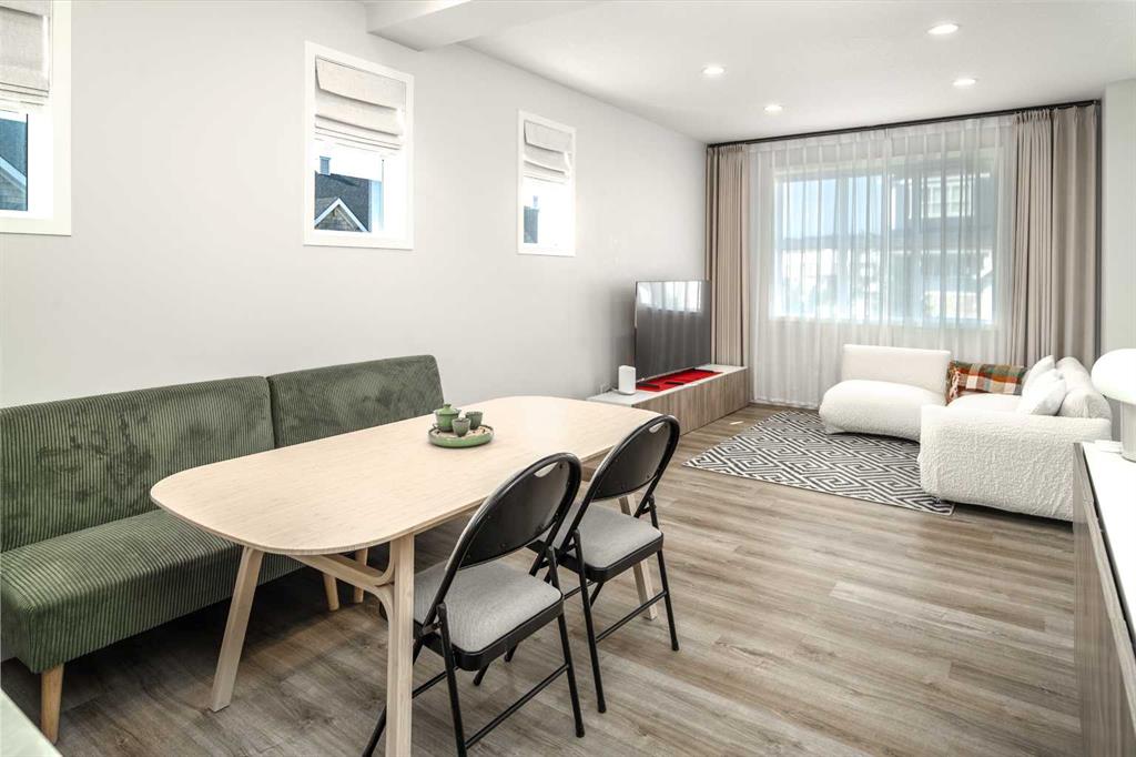 Welcome to this gorgeous END UNIT townhouse in the vibrant community of Nolan Hill! Featuring 3 bedrooms and an attached tandem double garage, this home is nestled in the heart of one of Calgary's most sought-after neighborhoods. The main level boasts an inviting, open-concept layout filled with abundant natural light. The spacious living area is enhanced by large windows that create a bright and cheerful atmosphere. The modern kitchen is a dream for culinary enthusiasts, complete with quartz countertops, stainless steel appliances, and a convenient breakfast bar. Just off the kitchen, enjoy your private balcony—perfect for morning coffee or peaceful evening conversations. Upstairs, the upper level is dedicated to comfort and relaxation. The spacious primary bedroom features a 3-piece ensuite, while two additional bedrooms offer flexibility for a growing family, a home office, or guest space. Additional highlights include central air conditioning, upper-level in-suite laundry, and a natural gas hookup for your BBQ. Don’t miss this one—book your private showing today!