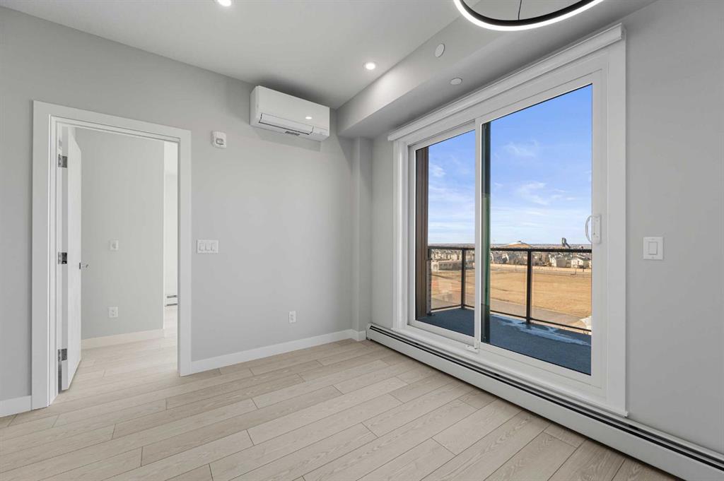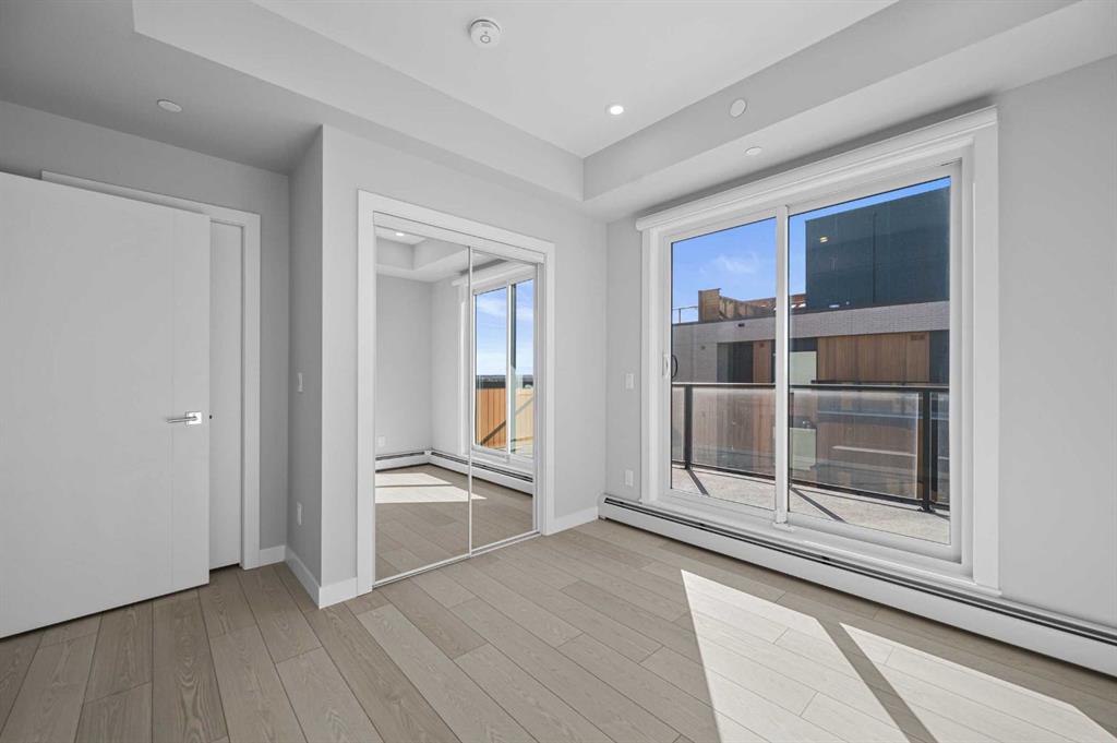 Experience modern urban living in the heart of West District at Mondrian. This well-designed 2-bedroom, 1-bathroom residence offers a smart use of space, combining functionality with contemporary style—perfect for those who value convenience and a vibrant community setting. The open-concept layout connects the kitchen, dining, and living areas, creating an efficient and welcoming space. The kitchen is outfitted with premium finishes and high-end appliances, including an integrated refrigerator, gas range, and built-in microwave—bringing both elegance and ease to everyday living. While compact, both bedrooms provide flexible options for a guest room, home office, or personal retreat. The centrally located 4-piece bathroom is easily accessible from all areas of the home. Additional highlights include in-suite laundry, air conditioning, and stylish window coverings. Step out onto your private balcony—ideal for a quiet morning coffee or an evening wind-down. Residents of Mondrian enjoy exclusive access to a rooftop terrace with breathtaking views, modern seating areas, and an ideal setting for entertaining or relaxing. Located steps from boutique shops, gourmet dining, parks, and essential amenities, this home delivers everyday convenience in one of Calgary’s most sought-after neighbourhoods. Titled underground parking ensures your vehicle remains secure and protected year-round. This is your opportunity to own a sleek, low-maintenance home in West District—discover the lifestyle that Mondrian offers today.
