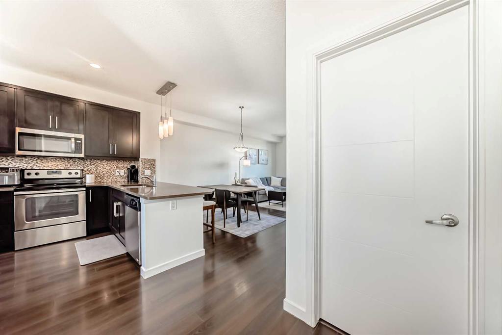 This bright Nolan Hill townhome offers thoughtfully designed living across two levels with approximately 1,302 sq ft RMS of finished living space. The main level features a functional kitchen that flows into the dining and living areas, plus a dedicated main-floor office and balcony — perfect for working from home or enjoying a coffee break. The upper level hosts a spacious primary bedroom with walk-in closet and ensuite, an additional ample sized secondary bedroom equipped with its own walk-in-closet ensuite, and convenient upper-level laundry. The lower level provides a versatile flex space for hobbies, a home gym or storage, and an attached garage (approx. 20'0" x 19'2") completes the package. With a prime Nolan Hill location directly across from shopping, groceries, and dining, this townhome blends comfort and everyday convenience. Don’t miss this rare combination of layout, lifestyle, and location. Schedule your viewing today!