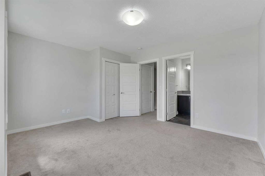 2 BEDROOMS!! 2.5 BATHS!! DOUBLE PRIMARY BEDROOMS!! RARE ATTIC STORAGE!! 1220+ SQFT OF LIVING SPACE!! IN CRANSTON!! Welcome to this well-designed home offering functionality, privacy, and unique features you rarely find in townhomes! The main floor welcomes you with a bright living area filled with natural light, flowing seamlessly into the dining space and kitchen. The kitchen offers great usability and direct access to the backyard, along with a dedicated utility area and a convenient 2PC bathroom completing the level. Upstairs, you’ll find TWO PRIMARY BEDROOMS, each with its own ensuite—perfect for privacy, roommates, or guests. The primary bedroom features a 4PC ensuite, while the second bedroom includes a 3PC ensuite. Laundry is also conveniently located on the upper floor. One of the standout features of this home is the BUILDER-DESIGNED ATTIC STORAGE, accessed through concealed stairs—offering a spacious and dedicated storage area that is rarely available in townhomes. Step outside to a fully enclosed backyard, ideal for kids or pets, with assigned parking right in front of the home and additional parking available along the quiet rear lane. Located in the desirable community of Cranston, close to schools, shopping, amenities, and with easy access to Deerfoot Trail and Stoney Trail. A PERFECT BLEND OF FUNCTIONALITY, PRIVACY & UNIQUE FEATURES — DON’T MISS IT!!