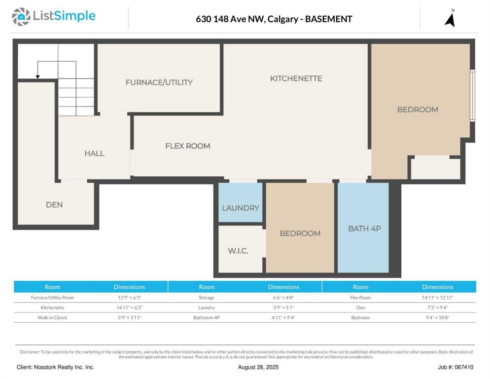 | Den | 7`3" x 9`4" | Basement |