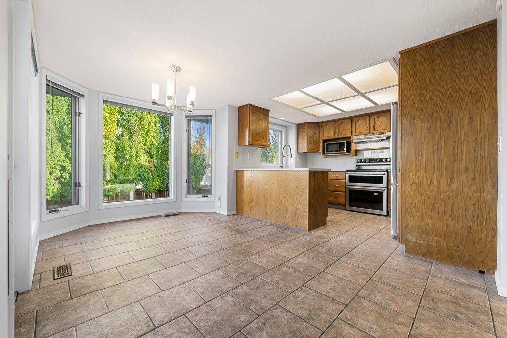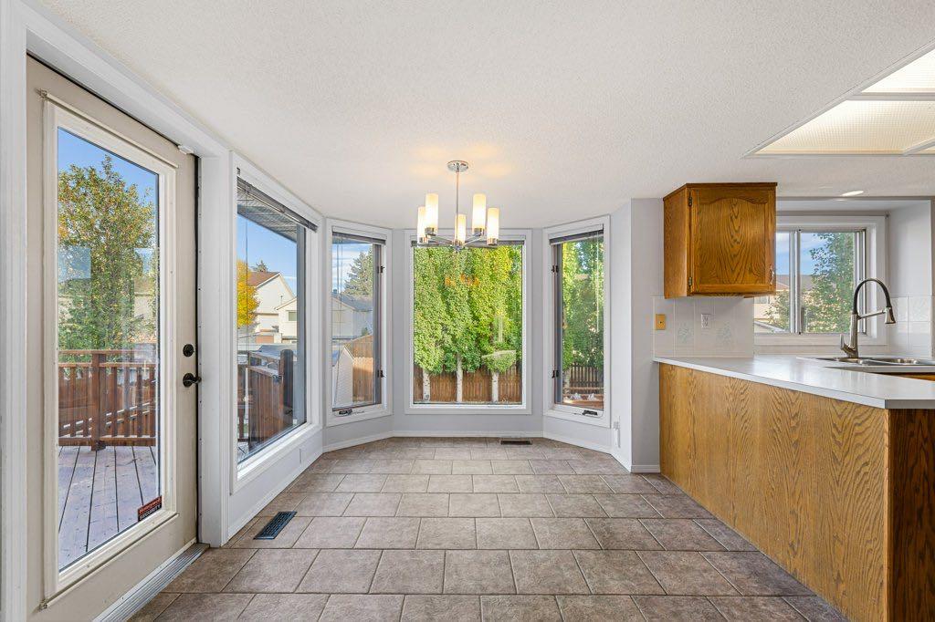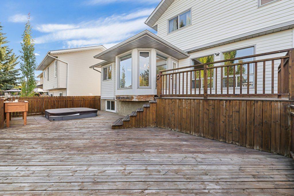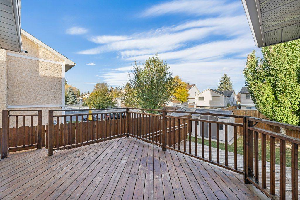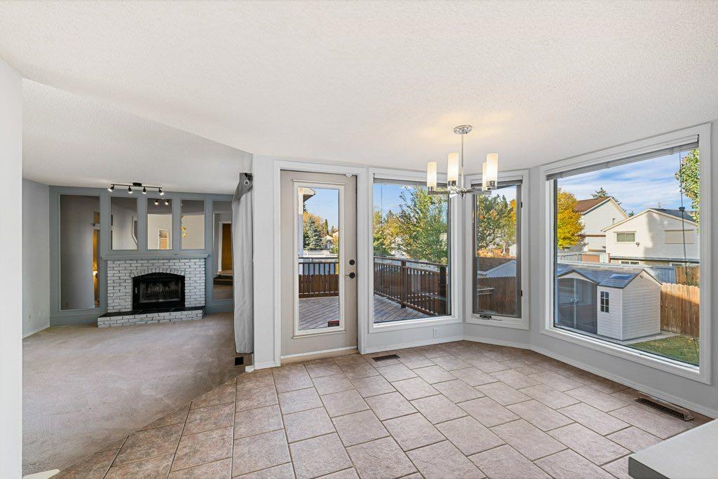 Welcome to this beautifully kept family home in Woodbine! From the moment you walk in, you’re greeted by soaring ceilings in the formal living and dining room that make a great first impression. The kitchen offers plenty of counter space, a large bay window, a brand-new stove (2025), and a bright nook that overlooks the backyard—perfect for keeping an eye on the kids while they play. Just off the kitchen is the family room, filled with natural light and centered around a cozy wood-burning brick fireplace, making it the heart of the home. A half bath and convenient main floor laundry complete this level. Upstairs, the spacious primary suite features vaulted ceilings, a walk-in closet, and a fully updated ensuite with a new soaker tub and tile surround (2025). Two additional bedrooms are generous in size, with great closets and plenty of natural light, and they share a full 4-piece bathroom. The fully finished basement gives you even more living space with a rec room, office area, a large fourth bedroom, and plenty of storage. Outside, the backyard is private and inviting, with mature trees, a huge deck, and ample space for summer BBQs and outdoor living. The double attached garage comes with built-in shelving for organized storage. This home has seen numerous upgrades for peace of mind and modern comfort, including: upgraded light fixtures throughout (2025), fresh paint (2025), new curtains and rods (2025), new hot water tank (2023), upgraded PEX water lines (2023), a new front window (2023) and a newer roof within the last 5 years. All of this, just steps to the park across the street, a 5-minute walk to Fish Creek Park, and close to the Woodbine shopping district. A wonderful opportunity in one of Calgary’s most desirable neighborhoods!