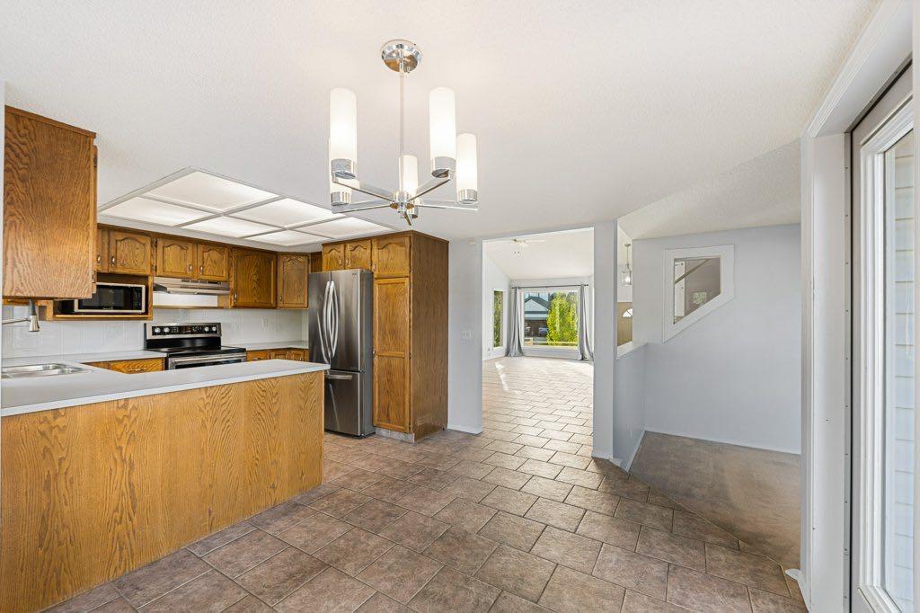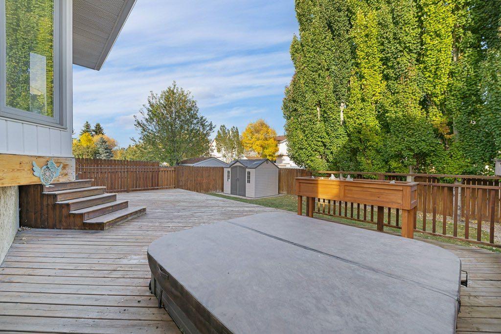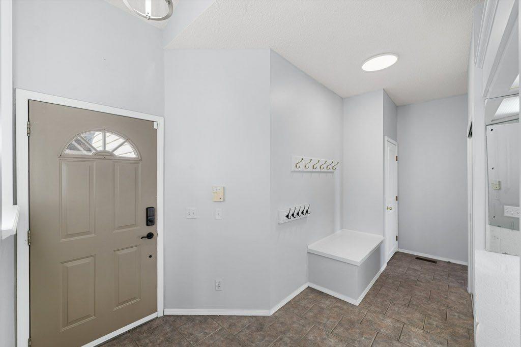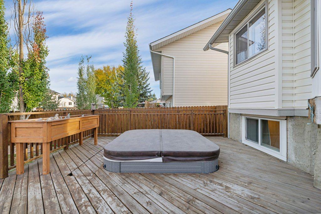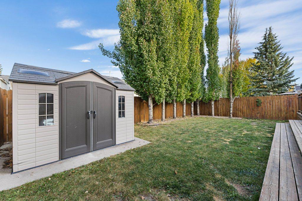 Welcome to this beautifully kept family home in Woodbine! From the moment you walk in, you’re greeted by soaring ceilings in the formal living and dining room that make a great first impression. The kitchen offers plenty of counter space, a large bay window, a brand-new stove (2025), and a bright nook that overlooks the backyard—perfect for keeping an eye on the kids while they play. Just off the kitchen is the family room, filled with natural light and centered around a cozy wood-burning brick fireplace, making it the heart of the home. A half bath and convenient main floor laundry complete this level. Upstairs, the spacious primary suite features vaulted ceilings, a walk-in closet, and a fully updated ensuite with a new soaker tub and tile surround (2025). Two additional bedrooms are generous in size, with great closets and plenty of natural light, and they share a full 4-piece bathroom. The fully finished basement gives you even more living space with a rec room, office area, a large fourth bedroom, and plenty of storage. Outside, the backyard is private and inviting, with mature trees, a huge deck, and ample space for summer BBQs and outdoor living. The double attached garage comes with built-in shelving for organized storage. This home has seen numerous upgrades for peace of mind and modern comfort, including: upgraded light fixtures throughout (2025), fresh paint (2025), new curtains and rods (2025), new hot water tank (2023), upgraded PEX water lines (2023), a new front window (2023) and a newer roof within the last 5 years. All of this, just steps to the park across the street, a 5-minute walk to Fish Creek Park, and close to the Woodbine shopping district. A wonderful opportunity in one of Calgary’s most desirable neighborhoods!
