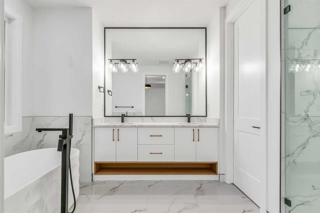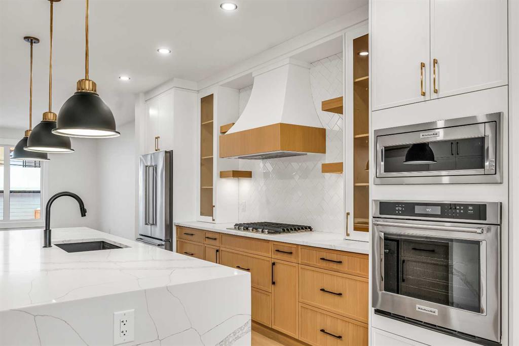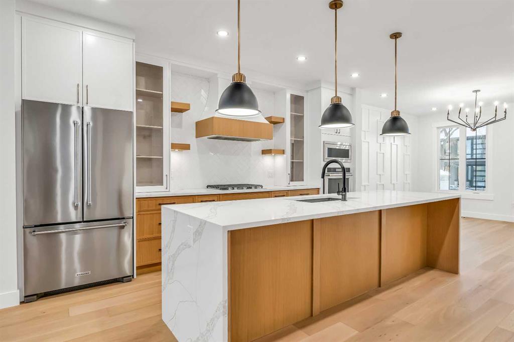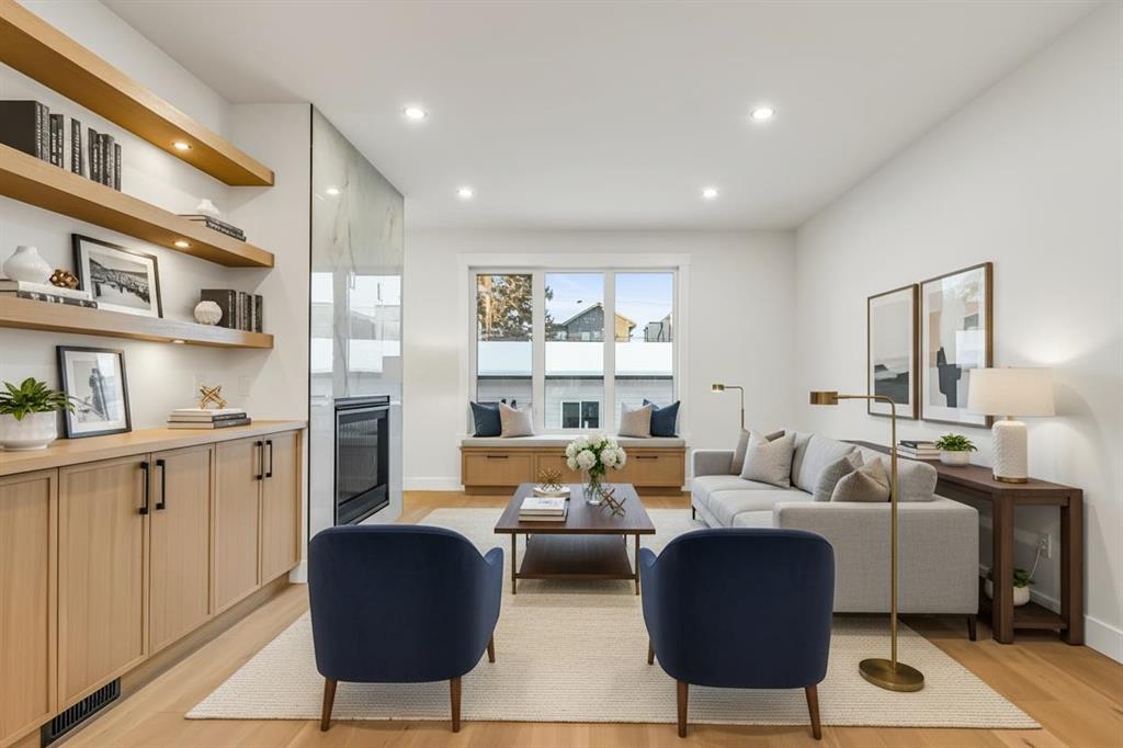 ***OPEN HOUSE: Sat, Dec 6th 12:00 - 2:00pm*** Set on a QUIET TREE-CANOPIED STREET IN MOUNT PLEASANT, this newly built home brings together refined craftsmanship and a layout designed for everyday comfort. A SOUTH-FACING FRONT PATIO introduces the property with warm light and a welcoming place to enjoy peaceful moments outdoors. Inside, CUSTOM MILLWORK in the front foyer sets an elevated tone and leads into an elegant dining room anchored by a WOOD FEATURE WALL that adds depth and character. A beautifully appointed GOURMET KITCHEN encourages both creativity and connection with high-end KITCHENAID APPLIANCES including a GAS COOKTOP and BUILT-IN WALL OVEN and MICROWAVE. STONE COUNTERS, UNDER-CABINET LIGHTING, an OVERSIZED CRUSHED GRANITE SINK, a GARBAGE PULLOUT, and an organized storage layout ensure the space functions effortlessly. A WATERFALL-EDGE ISLAND becomes the gathering point of the home with its clean lines and generous prep space. Adjacent to the kitchen, a walk-through area includes a WALL PANTRY with APPLIANCE COUNTER while an ENCLOSED ROOM offers versatility as a SECOND PANTRY or MAIN FLOOR OFFICE for structured workdays. An inviting living area sits at the back of the home, blending CUSTOM BUILT-IN SHELVING with a GAS FIREPLACE that overlooks the backyard for a relaxing evening atmosphere. A practical mudroom with ABUNDANT STORAGE sits near a tucked-away powder room styled with a WATERFALL-EDGE VANITY. A GLASS-RAILED staircase with HARDWOOD TREADS leads upstairs to a level finished entirely in HARDWOOD FLOORING. A central BONUS ROOM with a WOOD FEATURE WALL creates thoughtful separation between the primary and secondary bedrooms. The primary retreat feels serene with a COFFERED CEILING, LARGE WALK-IN CLOSET, and a finely crafted ENSUITE featuring a STEAM SHOWER, FREE-STANDING TUB, DUAL VANITY, and ELECTRIC IN-FLOOR HEATING for added morning comfort. Two additional bedrooms, a well-designed 4-piece bath, and a convenient laundry room complete this floor. A FULLY DEVELOPED BASEMENT extends the home with a WET BAR and BEVERAGE CENTER that simplify weekend hosting. A spacious rec room includes ENTERTAINMENT BUILT-INS and room for movie nights, games, or fitness setups. A fourth bedroom with LARGE WALK-IN CLOSET and a 4-piece bathroom offer privacy for guests while an enclosed FLEX ROOM provides options for a FIFTH BEDROOM, HOME GYM, or OFFICE depending on lifestyle needs. Enjoy a PRIVATE BACK YARD with EXTENDED GREEN SPACE for children and pets and a generous patio area suited to barbeques and outdoor relaxation. Added conveniences include ROUGH-IN FOR AIR CONDITIONING, a DOUBLE DETACHED GARAGE with 8-FOOT DOOR, EV CHARGER READY ROUGH-IN, and a PAVED BACK LANE. This residence delivers modern luxury, thoughtful design, and walkable inner-city living close to CONFEDERATION PARK, SAIT, and the cafés and restaurants along 19 Street. A sophisticated offering for buyers seeking exceptional design, quality finishes, and a truly livable inner-city setting.