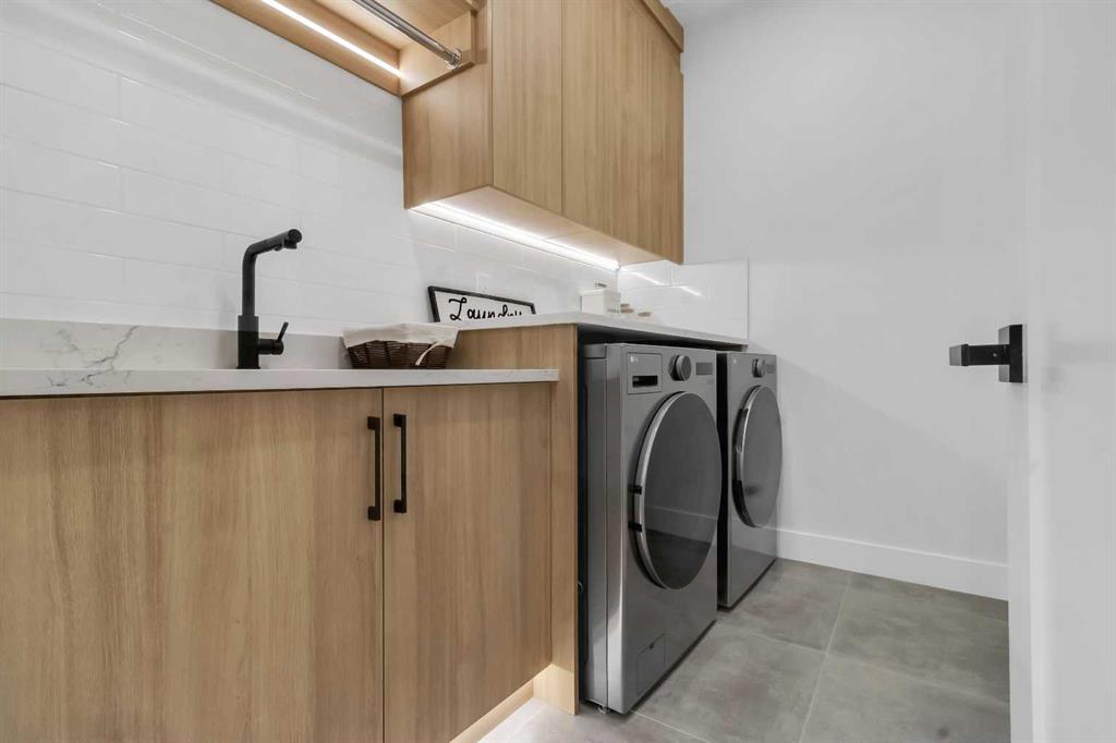 Modern luxury and timeless design come together in this brand new, meticulously crafted infill by Moon Homes, ideally located on a quiet, tree lined street in the heart of Mount Pleasant. Offering thoughtfully curated living across all three levels, this residence delivers elevated craftsmanship, refined architectural detailing, and exceptional functionality just steps from Confederation Park and minutes to downtown. The main floor is defined by soaring 10 foot ceilings, oversized windows, rich hardwood flooring, and custom millwork throughout. A grand arched entry opens to a spacious foyer, setting the tone for the sophisticated interior. The open concept living and dining areas are anchored by a beautifully tiled gas fireplace with custom built ins and a statement chandelier, while large sliding patio doors create seamless indoor outdoor flow to the rear concrete patio, ideal for entertaining. The chef inspired kitchen is a true showpiece, featuring a massive quartz island, premium Frigidaire Professional Series appliances, a custom slat hood fan, bar fridge, and full height cabinetry with extensive pull out storage. Thoughtfully designed LED lighting including under cabinet, toe kick, floating shelf, and glass front upper lighting adds both function and dramatic ambiance. A dedicated pocket office or home workspace and a custom mudroom with built ins are perfectly positioned for modern daily living, complemented by a stylish powder room with a floating vanity and designer lighting. Upstairs, wainscoting continues through a bright, sun filled hallway. The primary retreat is nothing short of exceptional, showcasing nearly 15 foot vaulted ceilings, a fully detailed feature wall, upper transom windows, plush carpeting, and a striking chandelier. The walk in closet offers custom shelving, pull outs, and motion sensor LED lighting. The spa inspired ensuite includes heated tile floors, dual vanities, a freestanding soaker tub, a tiled rainfall shower with bench, ambient mirror and vanity lighting, and a private water closet. Two additional bedrooms each feature walk in closets and share a beautifully appointed four piece bathroom. A well designed upper laundry room includes LG appliances, folding counter, deep sink, cabinetry, hanging rack, and linen storage conveniently located near the bedrooms. The fully finished legal basement suite (pending final inspection) offers a private side entrance and mirrors the quality of the main home. Complete with a full kitchen, spacious living area, modern four piece bathroom, and dedicated laundry with built in sink, this space is ideal for extended family, guests, or future rental income. Finished with a detached double garage and paved alley access, this home is surrounded by top rated schools, parks, pathways, Mount Pleasant Pool, and beloved local amenities, with quick access to major routes and the city core.