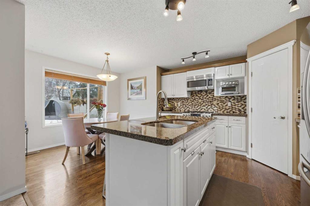 OPEN HOUSE SATURDAY MARCH 28, 12:00-3:00 Welcome to this beautifully fully developed detached home offering nearly 2,900 sq ft of total living space in a highly sought-after, mature SW community—just steps from Fish Creek Park! From the moment you enter, you’re greeted by a stunning two-storey foyer that sets the tone for this spacious and well-designed home. The main floor features a formal dining room, perfect for entertaining, along with a bright and inviting living room complete with a gas-powered stone fireplace. The modern kitchen is a true centerpiece, showcasing white cabinetry, granite countertops, a gas stove, and a large island with breakfast bar—ideal for family gatherings and everyday living. You’ll also appreciate the hardwood floors and brand new carpet throughout the main level. A versatile flex room adds extra functionality and can easily serve as a home office, mudroom, or even a custom dog wash space. Upstairs, you’ll find brand new laminate flooring throughout, a generous primary retreat with a full ensuite bathroom, two additional well-sized bedrooms, and another full bath. The convenient upper-floor laundry room makes daily living even easier. The fully finished basement expands your living space with two additional bedrooms, a full bathroom, and an incredible theatre room complete with projector and screen—all included. Custom ceiling lighting creates the perfect ambiance for movie nights. There’s even a built-in climbing wall in one of the bedrooms, making this home especially fun and functional for active families. Outside, enjoy your own private backyard oasis with mature trees and lush landscaping providing excellent summer privacy. A large back deck and welcoming front porch offer great spaces to relax or entertain. Additional highlights include a newer roof with Class 4 impact-rated shingles and a 50-year warranty, adding long-term value and peace of mind. Ideally located within walking distance to Fish Creek Park, close to shopping and dining, including Taza Park, and offering easy access to transit, the C-Train, and just a 20-minute commute to downtown—this home truly combines space, comfort, and convenience in one exceptional package.