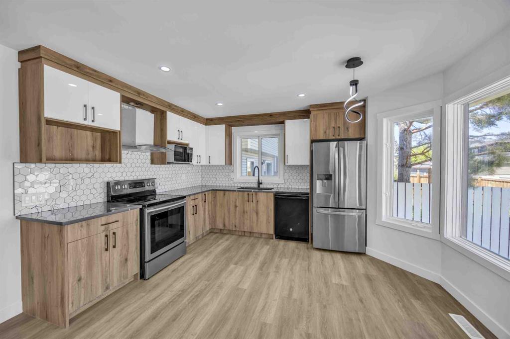 ** TWO BEDROOM ILLEGAL SUITE || CENTRAL AIR CONDITIONER || NEW ROOF || NEW DRIVEWAY || VINYL WINDOWS || FIREPLACE || RAILING || SIDE ENTERANCE || STAINLESS STEEL APPLIANCES || BACK LANE || NEW HOT WATER TANK ** Welcome and step into luxury and comfort with this stunning, fully renovated front-drive home in Martindale with back alley access! Located in one of Northeast Calgary’s most desirable communities, this 5-bedroom, 3.5-bathroom residence is thoughtfully upgraded with high-end finishes throughout. Features include luxury vinyl plank flooring, flat ceilings, a brand-new concrete front driveway, fresh exterior paint, new roof, central air conditioning, modern railings, and striking feature walls. The main floor offers a spacious layout with a formal living room, cozy family room with a fireplace, a generous dining area, and a brand-new kitchen equipped with quartz countertops, full-height cabinets, and stainless steel appliances—designed for both everyday use and entertaining. Upstairs, the large primary bedroom includes a walk-in closet and a private 4-piece ensuite, accompanied by two additional bedrooms, a shared 4-piece bathroom, and a separate laundry for added convenience. The basement is an illegal suite featuring a separate side entrance, two bedrooms, a modern kitchen, a full bathroom, and a bright living area—ideal for extended family or rental potential. With front-drive access, back alley, and a location close to schools, shopping, places of worship, parks, and transit, this move-in-ready home offers comfort, convenience, and value. Book your showing today with your REALTOR.