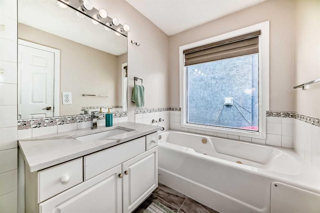 Fully renovated , This former show home is meticulously cared for and shows pride of ownership! Easy to please palette with neutral paint and flooring colors. The front facing formal dining room (or flex area) has decorative ceiling cornice and a sunny bay window. Fresh white cabinetry, peninsula island, glass door inserts, fridge, stove, dishwasher and stainless fridge in the kitchen. The main floor plan is perfect for easy flow between the kitchen, spacious eating nook and living room. Windows and vaulted ceilings add to the openness of the space. There is a cozy gas fireplace to add warmth on the cooler days. Patio access to the west facing back deck (14x9) which is covered in durable and easy care newer trek decking. Upper cabinets provide extra storage in the main floor laundry. The Master bedroom has decorative wood detail and vaulted ceilings as well as a walk in closet and jetted tub and shower en suite. The lower level has two more bedrooms and a very large open rec are as well as a 3 piece bath. There is RV parking in the rear with convenient power and water hook ups .