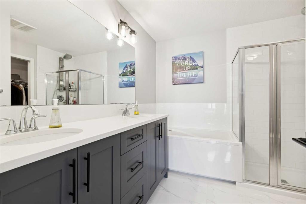 JUST LISTED in WEST SPRINGS! This FULLY FINISHED “TURN KEY” 2 storey built in 2019 is located near the end of a QUIET CUL-DE-SAC LOCATION! Walking distance to great schools & amenities! EXECUTIVE FINISHINGS throughout including HIGH 9’ CEILINGS, 8’ INTERIOR DOORS, wide open floor plan, LOADS OF WHITE CEILING HEIGHT KITCHEN CABINETRY. There is QUARTZ COUNTERTOPS, soft close drawers, 5 burner GAS RANGE, massive island, BUILT-IN MICROWAVE, large corner pantry, ENGINEERED HARDWOOD FLOORING, and fireplace! White spindle railings leads to the upper level with LVP FLOORING, HUGE BONUS ROOM, UPPER FLOOR LAUNDRY, guest bathroom with 2 sinks, and 3 large bedrooms with walk-ins closets including the king sized primary, beautiful 5 PCE ensuite with standup shower and deep soaker tub. The lower level is beautifully finished with HIGH 9’ CEILINGS, large recreation room, 4th bedroom, 4 PCE bathroom, large windows, and huge mechanical room for plenty of storage. The DOUBLE ATTACHED GARAGE is large enough to fit a full sized truck! So many extras in this home - CENTRAL AIR CONDITIONING (2023), high efficient tankless water heater, triple pane windows, knockdown ceiling texture, pot lights, water softener, custom window coverings, maintenance free vinyl fence, the list goes on and on! $999,900. Book your showing as this property shows 10/10, is priced to sell and will not last long!
