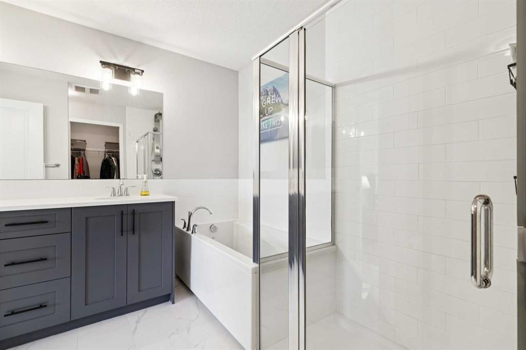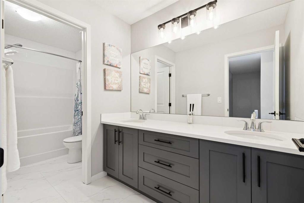 OPEN HOUSE SUNDAY, MARCH 22 FROM 2-4PM. JUST LISTED in WEST SPRINGS! This FULLY FINISHED “TURN KEY” 2 storey built in 2019 is located near the end of a QUIET CUL-DE-SAC LOCATION! Walking distance to great schools & amenities! EXECUTIVE FINISHINGS throughout including HIGH 9’ CEILINGS, 8’ INTERIOR DOORS, wide open floor plan, LOADS OF WHITE CEILING HEIGHT KITCHEN CABINETRY. There is QUARTZ COUNTERTOPS, soft close drawers, 5 burner GAS RANGE, massive island, BUILT-IN MICROWAVE, large corner pantry, ENGINEERED HARDWOOD FLOORING, and fireplace! White spindle railings leads to the upper level with LVP FLOORING, HUGE BONUS ROOM, UPPER FLOOR LAUNDRY, guest bathroom with 2 sinks, and 3 large bedrooms with walk-ins closets including the king sized primary, beautiful 5 PCE ensuite with standup shower and deep soaker tub. The lower level is beautifully finished with HIGH 9’ CEILINGS, large recreation room, 4th bedroom, 4 PCE bathroom, large windows, and huge mechanical room for plenty of storage. The DOUBLE ATTACHED GARAGE is large enough to fit a full sized truck! So many extras in this home - CENTRAL AIR CONDITIONING (2023), high efficient tankless water heater, triple pane windows, knockdown ceiling texture, pot lights, water softener, custom window coverings, maintenance free vinyl fence, the list goes on and on! $999,900. Book your showing as this property shows 10/10, is priced to sell and will not last long!