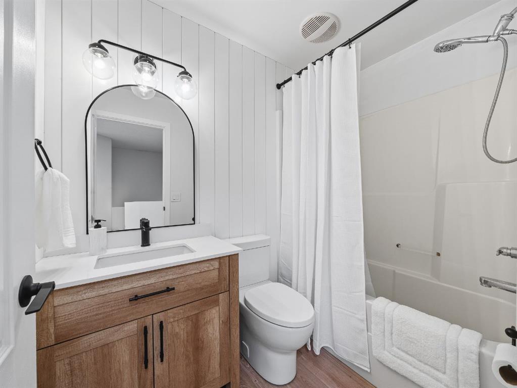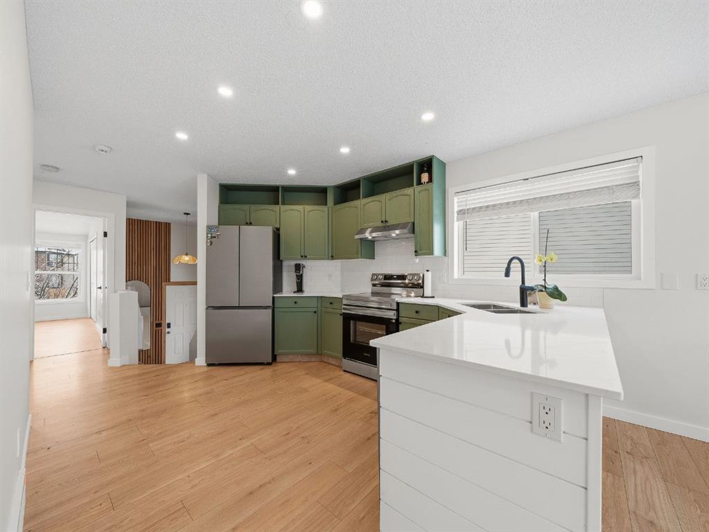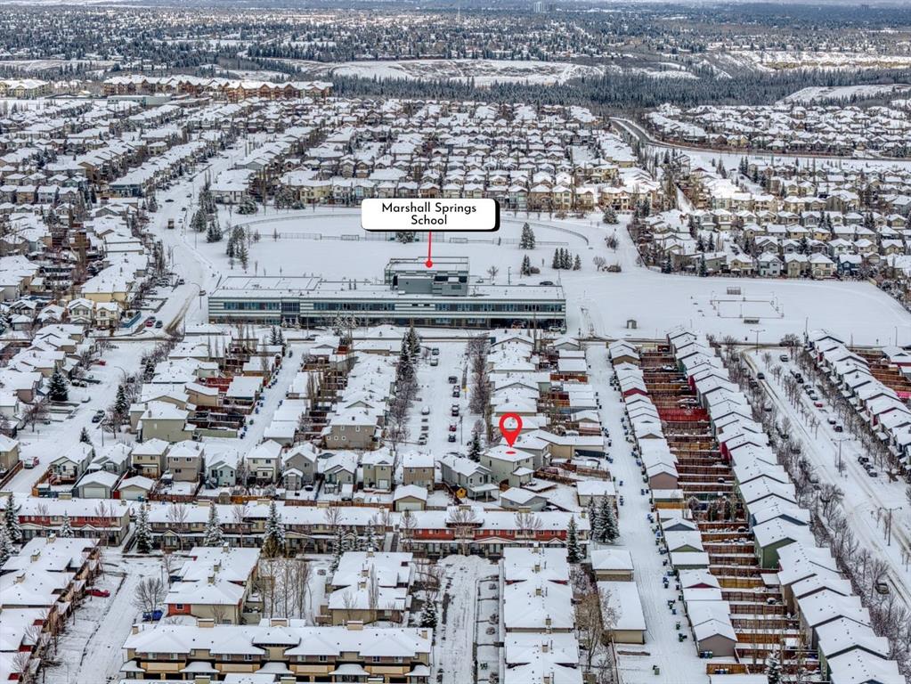 Experience elevated living in this extensively upgraded bi-level, spanning over 1,800 sqft DEVELOPED living space where thoughtful design and quality craftsmanship come together to create a truly MOVE-IN ready home. You are welcomed by stunning CUSTOM WOODWORK in the front foyer, setting the tone for the stylish finishes found throughout. The beautifully renovated kitchen is both functional and sophisticated, featuring brand NEW APPLIANCES, QUARTZ countertops, a modern TILE backsplash, new HARDWARE and charming SHIPLAP detailing around the island that adds texture and character to the space. NEW FLOORING, fresh PAINT, and UPDATED FIXTURES throughout the home create a bright, cohesive and fresh feel. Both bathrooms have been tastefully upgraded with QUARTZ countertops, SHIPLAP detailing, TILE, and fixtures continuing the home’s refined aesthetic. The fully developed WALKOUT basement offers HIGHER CEILINGS and expansive SUNSHINE WINDOWS, allowing natural light to pour into the lower level while enhancing the sense of space and comfort. Enjoy seamless indoor-outdoor living with a DECK just off the kitchen, perfect for entertaining as well as a private PATIO below. Situated on an IMPRESSIVE PIE lot with ample space for RV STORAGE, the property also features a DOUBLE DETACHED GARAGE that is DRYWALLED and INSULATED with additional space to park on the driveway. Significant mechanical updates, including a NEW FURNACE and HOT WATER TANK, provide added confidence in the home’s long-term value. Ideally located within WALKING distance to Marshall Springs School and just moments from nearby shops and everyday amenities. This exceptional property offers a rare combination of style, function and convenience.