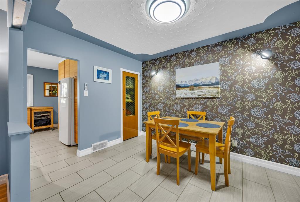 This charming bungalow is nestled on a quiet street in the heart of the historically iconic community of Bowness. Beautiful mature trees will greet you at the curb and the extended concrete drive will usher you up to the front door. You will be greeted at the foyer with glistening original hardwood flooring. The comfortable sized living room is illuminated with natural light flowing through the large front bay window. A lovely built in adjacent the bay window is an ideal location for the TV or plants. Spacious dining area with a beautiful papered feature wall, touch activated sconces, and stunning original glass paned pantry door. This gem boasts a balance of updates throughout while maintaining qualities of its original charm. The beautifully renovated kitchen is an expressive space that is sure to inspire many lovingly prepared meals. The aesthetically appealing two toned soft close drawers and cabinets offer functional space saving enhancements while the updated oversized gas stove and range hood provide an engaging focal point to the kitchen. Updated 4 pc main bath. A comfortable sized Primary room and second bedroom complete your tour of the main floor. The rear door offers a separate entry to the main and lower level. A large storage closet and open space await you at the bottom of the stairs. This is an ideal space to set up the gym equipment or keep those valuable bicycles indoors. The large bright utility room is home to the washer and dryer, hobby area and additional storage. The substantially sized recreation room is home to the dry bar and striking stone faced wood burning fireplace. A third bedroom and updated 3 piece bath make this an exceptional area for entertaining. The extended side driveway offers plenty of additional parking. The carport will keep the snow off the vehicle during the winter months & also includes a front storage area. The massive back yard is an entertainers dream. The beautiful stone patio welcomes your guests to gather around the fire pit while you grill up the steaks on your gas BBQ. The rear fence has a swing door and could accommodate RV parking. Or, build your dream garage at the rear of the home and park the RV on the side driveway. Alternatively one could remove the carport and have dual access to a garage. Additional upgrades to this home include newer LED light fixtures throughout, paint, windows on the main and lower bedroom, newer hot water tank & furnace, roof is approximately 10 years old, and sewer line to the home has been replaced. Close proximity to schools, shopping & amenities, Bowness Park, COP, Shouldice Athletic Park, the Children's hospital & the University. The of abundance of amenities within the community and surrounding area is exceptional. A short commute to downtown and quick access to highway 1 for those who enjoy adventuring outside the city. Contact your favourite realtor today to call this home your own.