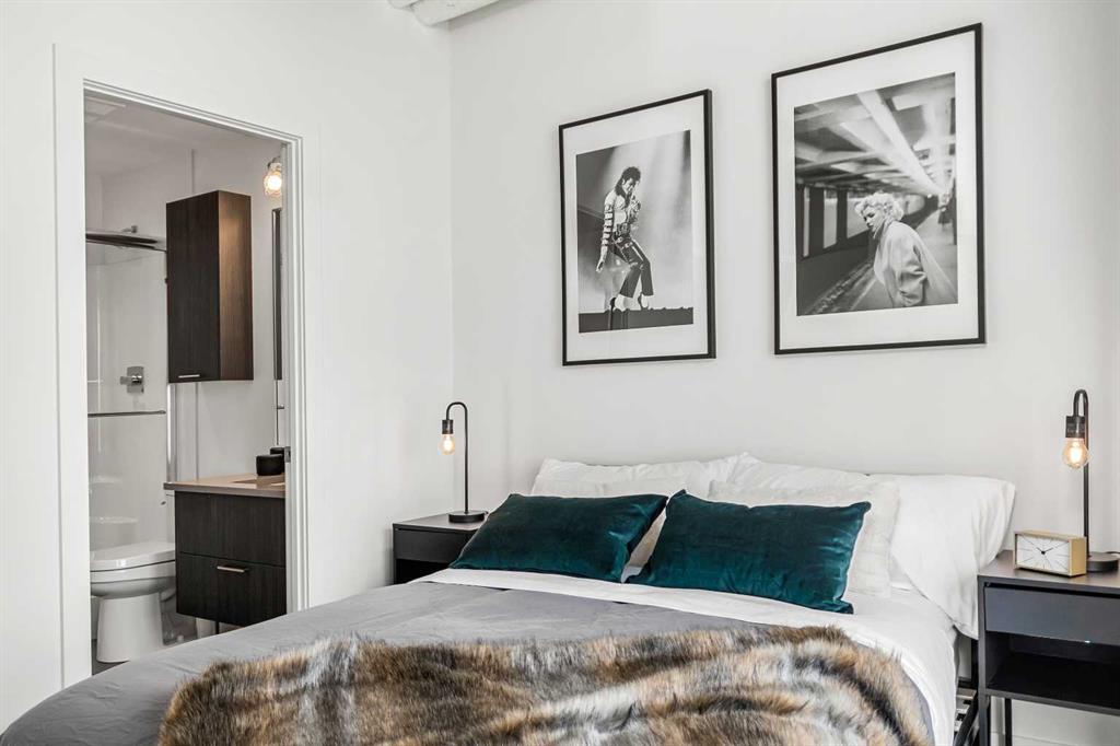 Downtown apartment for rent. This stunning 2-bedroom, 2-bathroom condo is a true gem, boasting breathtaking views of the majestic Bow River and historic Fort Calgary. Spanning just under 700 square feet, this beautiful unit features an open and airy floor plan that maximizes the natural light and showcases the stunning scenery outside. The modern and chic decor perfectly complements the contemporary design, making this space a true feast for the eyes. This prime location is within walking distance to the charming community of Inglewood and the popular river pathway, perfect for those who love the great outdoors.