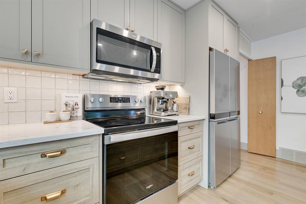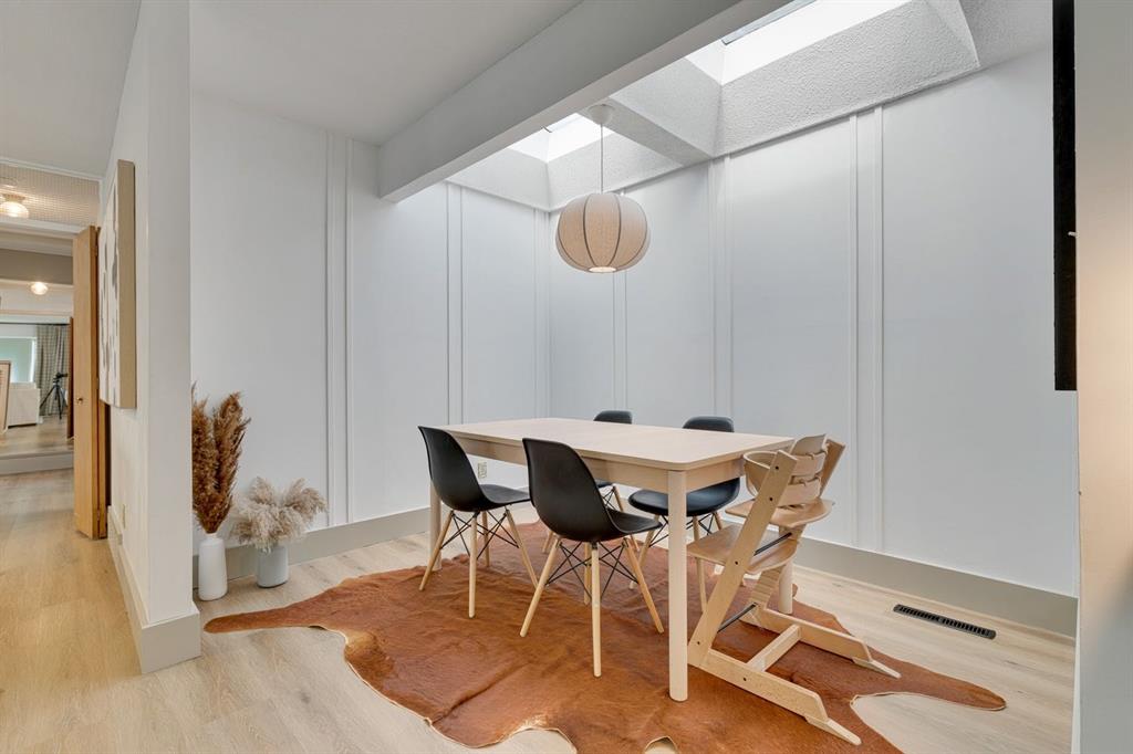 You won't want to miss this Beautifully Renovated Jaeger-Built Bungalow with a splash of the original Iconic Mid-Century Charm. The new Open Floor Plan offers a large, airy Living Room w/ a Bay Window and a Stunning Stone-Featured Wood-Burning Fireplace – perfect for cozy gatherings or entertaining. The Elegant Formal Dining Room features a Skylight and a striking Batten Wall Feature. The gorgeous, Open-Concept Gourmet Kitchen boasts Quartz Countertops, Custom Cabinetry, and a Spacious Island ideal for cooking and entertaining. There are 3 Generously Sized Bedrooms and the beautifully appointed 5-Piece Spa-Like Bathroom – complete with a convenient Laundry Chute. Premium Flooring flows throughout, and the Freshly Painted Exterior enhances the home’s undeniable Curb Appeal. The Fully Developed Basement offers a Large Rec Room, Versatile Flex Room, Bedroom with Walk-In Closet, and a Newly Reno’d 3-Piece Bath, along with a functional Laundry Room and Ample Storage Area – perfect for guests, teens, or extended family. This home also features a Single Attached Garage and Extended Driveway on a full 50-Foot Wide Lot. The property boasts 2 Side Patios and a Spacious Back Yard with room to add a Double Garage while still maintaining plenty of outdoor space for entertaining or play. Upgrades Include: New Windows (some), New Flooring Throughout, Freshly Painted Exterior, Designer Lighting, Custom Kitchen with Quartz Countertops, and much more – a perfect combination of Style, Function, and Modern Comfort. Check out the video!!