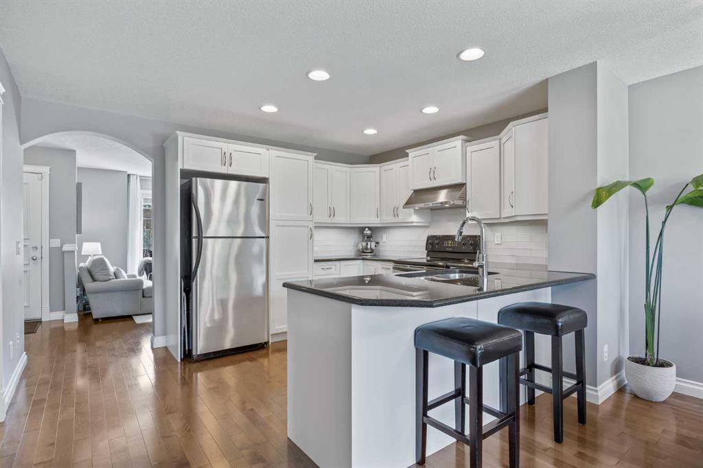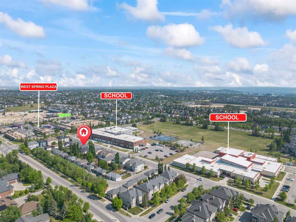 Welcome home to West Springs! Set on a deeper-than-average lot, this home features 3 bedrooms, 2 full bathrooms, 2 half bathrooms, and a beautifully landscaped yard. Inside, the kitchen has been thoughtfully updated with freshly sprayed cabinets (throughout the home), a newer backsplash, granite counters, and a breakfast bar. A separate side entry with a mudroom, laundry, and a convenient 2-piece bathroom makes this layout ideal for families. Upstairs, you’ll find three generously sized bedrooms, each with oversized windows that fill the rooms with natural light, along with two full bathrooms. The primary suite offers a private ensuite and a walk-in closet—creating a comfortable retreat at the end of the day. The fully finished basement is ready for movie nights and game days, complete with an entertainment system featuring a projector and screen, built-in surround sound speakers, and an electric fireplace for added warmth! Recent upgrades include a new roof and furnace, plus air conditioning added within the last five years. Additional features include a 3-zone irrigation system, central vacuum with attachments, and an alarm system. The detached garage is insulated, drywalled, and wired with a 220V outlet—perfect for EV charging. Just steps away, you’ll find a beautiful natural wetlands area with a pathway system ideal for walking, running, or biking. You’re also within walking distance of schools, parks, playgrounds, local shops, restaurants, and all the everyday amenities you could need. This home blends lifestyle, comfort, and a prime location in one of Calgary’s most sought-after southwest communities.