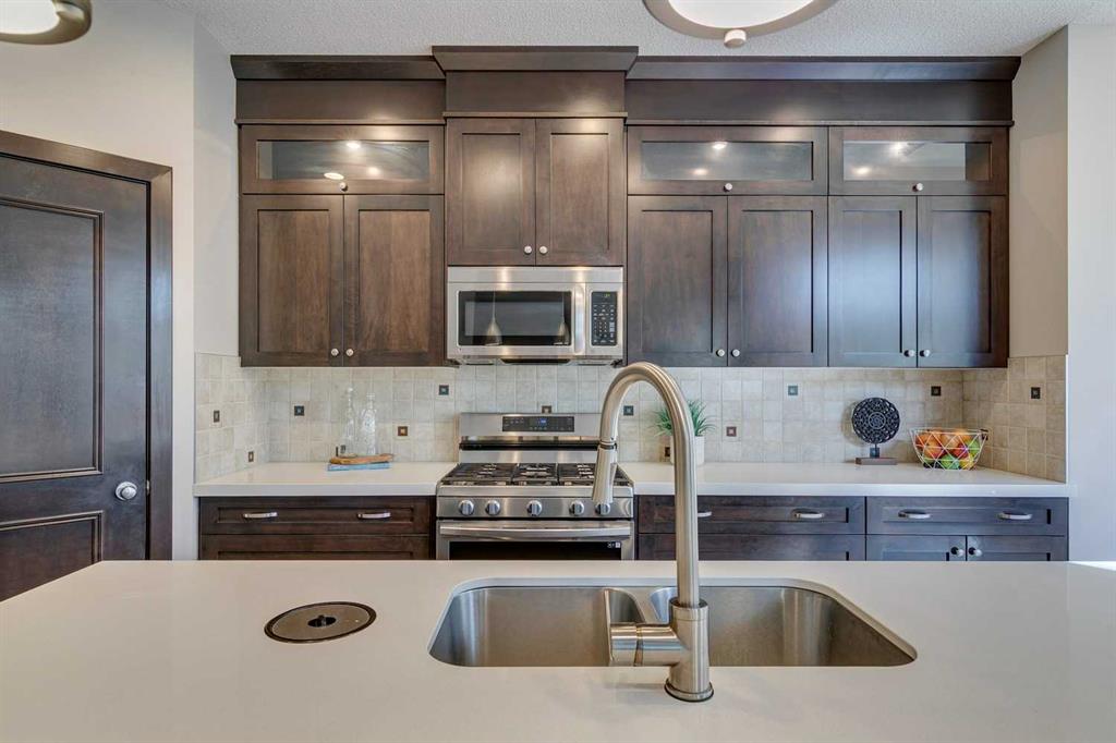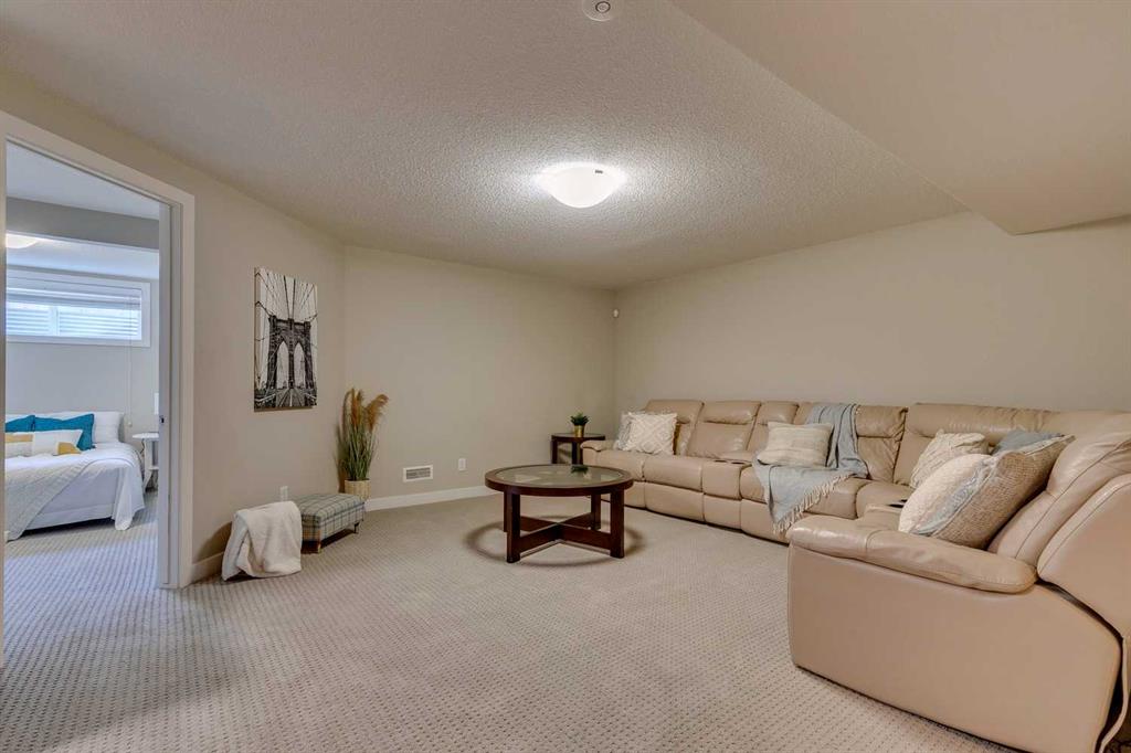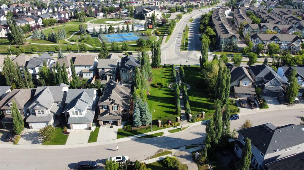 Welcome to this beautifully appointed Estate style 2-storey detached home, ideally situated directly across from a vibrant a park with , tennis courts, skating rink and much more Featuring a striking stucco and stone exterior with a grand stone archway at the front entrance, exposed aggregate driveway, and a multi-level composite deck in the south-facing backyard. Inside, you'll find an elegant interior with 9 foot ceilings, hardwood floors, tile, and plush carpet throughout. The main floor boasts a large office, convenient 2-piece bathroom, and a spacious mudroom/laundry area with the washer/dryer just off the double attached garage. The open-concept kitchen is a dream, complete with granite countertops, gas range, microwave hood fan, corner pantry, and a built-in compost chute — a perfect blend of style and sustainability. The bright and airy living room features a cozy gas fireplace and direct access to the backyard patio through sliding doors. Step outside to enjoy a sunny south-facing yard with a multi-level composite deck, perfect for entertaining. You'll also find a convenient storage shed and ample space for gardening or relaxing in the sun. Upstairs, you'll find three generously sized bedrooms, including a south-facing primary retreat with a walk-in closet and spa-inspired ensuite featuring dual sinks with a centre soaking tub, a standalone shower, closed powder room, and make-up vanity. A full 4-piece bathroom serves the additional 2 bedrooms. The spacious bonus room, overlooking the park, includes California shutters, built-in shelving/tv stand — perfect for movie nights or a play area. The legal basement suite with private entrance is a fantastic mortgage helper or investment opportunity oir great for Multi family living, the legal suite includes two bedrooms, a 4-piece bathroom, carpet and tile flooring, full kitchen with fridge, stove, mini dishwasher, and vented hood fan. The legal suite also features its own laundry area, under-stairs storage, and pantry closet. Cranston residents can enjoy year round fun at Century Hall - splash park, tennis courts, skate park, summer camps, indoor and outdoor sports courts, facility rentals, special events (wine tastings, artisan markets, youth clubs). Close proximity to Bow River pathway systems, golf courses, Seton & Mahogany shopping centres and dining opportunities. This home truly has it all — location, space, style, and income potential. Don’t miss your chance to own this exceptional property! Basement suite will be vacant September 30th.