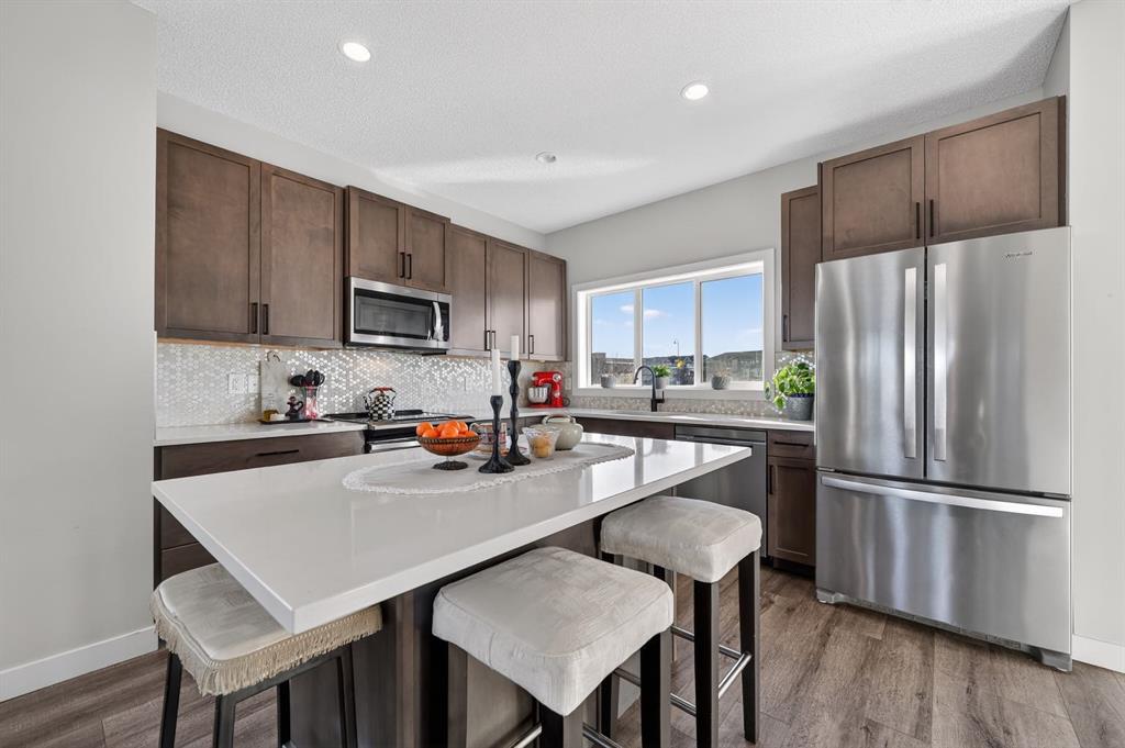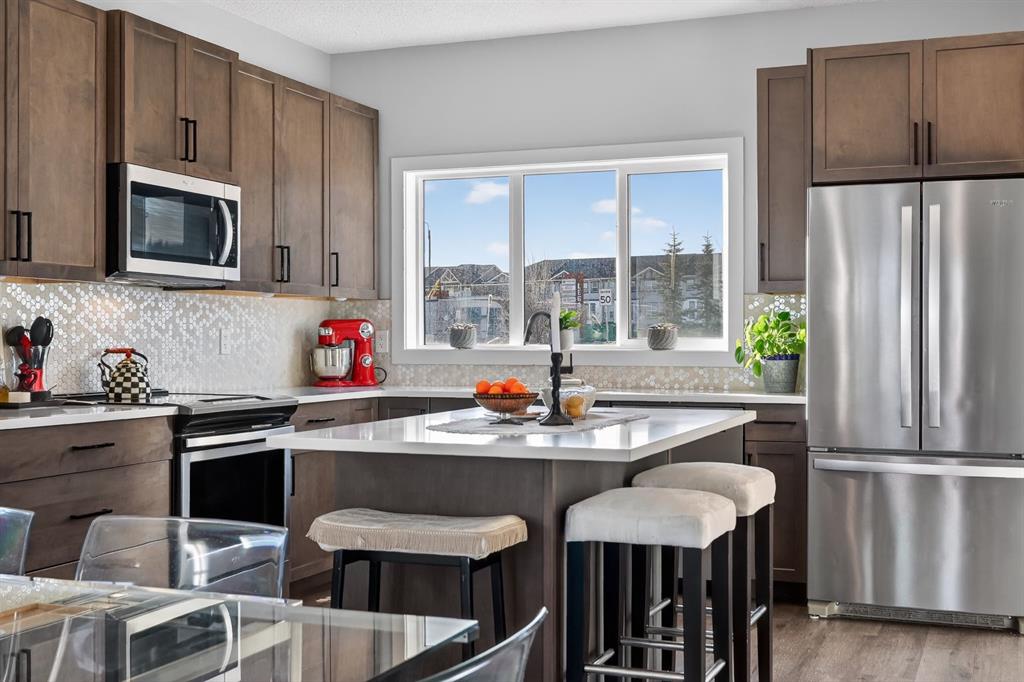 Proudly built by renowned builder Cardel Homes, this Indigo 1 model is an original-owner gem in the vibrant SE Calgary community of Walden. Enjoy the freedom of no condo fees and the advantage of one of the largest lots in the area, complete with a desirable west-facing backyard perfect for afternoon sun, evening barbecues, and year-round outdoor enjoyment. Spanning 1,550 sq. ft. above grade, this bright and open-concept home features 3 spacious bedrooms, 2.5 bathrooms plus the flexibility of a full unfinished basement ready for your personal touch—ideal for future development, extra storage, or a growing family. Flooded with plenty of windows and abundant natural light throughout, the home feels airy and inviting from the moment you step inside. Premium finishes elevate every space, including luxury vinyl plank flooring on the main level and in all bathrooms for easy maintenance and a modern feel. The impressive kitchen is a true highlight, boasting loads of cupboards and countertop space, sleek quartz countertops, and a complete Whirlpool stainless steel appliance package. Thoughtful details continue with stylish stair railing, low-maintenance Hardiboard siding on the exterior, professional front yard landscaping that set this home apart. The primary bedroom comes complete with a spacious 5-piece ensuite bathroom and a generous walk-in closet—perfect for unwinding and staying organized. Located in family-friendly community —known for its tranquil parks, pathways, natural wetlands, and proximity to shopping, amenities, and Fish Creek Provincial Park—this property offers the perfect blend of peaceful suburban living with convenient access to everything Calgary has to offer. Don't miss this rare opportunity to own a well-maintained, move-in-ready home, in one of Calgary's most desirable communities. Schedule your private viewing today!