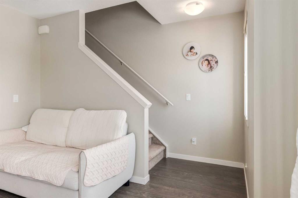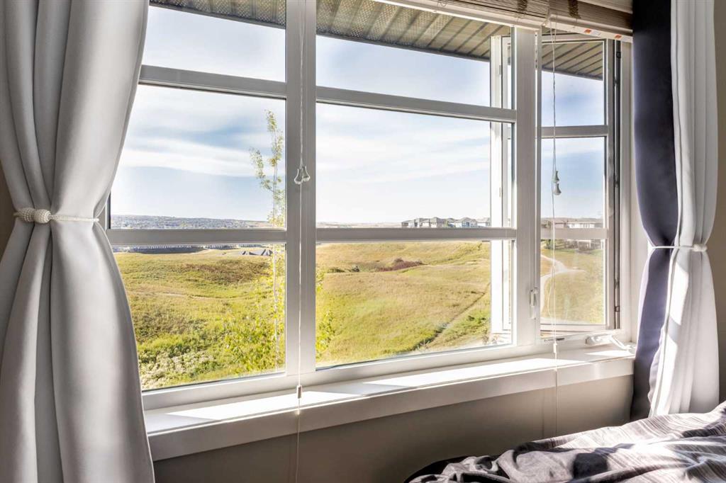 Priced to sell! Enjoy breathtaking ravine and green space views from this beautifully maintained 3-bedroom, 2.5-bathroom townhome in Vantage on Evansridge. With nearly 1,541 sq. ft. of finished living space, a double attached garage, and low condo fees, this home offers outstanding value compared to nearby single-family houses. From the private front patio, step into the main floor featuring a versatile bedroom that can also serve as a home office or den, along with direct access to the garage. Upstairs, the open-concept second level is anchored by a stylish kitchen with a large granite island, stainless steel appliances, dark-stained maple cabinets, and a spacious pantry. The kitchen flows seamlessly into the dining area and bright living room, where expansive windows frame the stunning ravine views. A balcony with a gas line and a convenient half bath complete this level. The top floor offers three bedrooms, two full bathrooms, and laundry. The primary suite features a walk-in closet and a beautifully upgraded ensuite with a double shower. Additional highlights include Hunter Douglas window coverings, a water softener, and an insulated garage that easily fits two vehicles. This move-in ready home is surrounded by natural pathways, playgrounds, and green space, with Our Lady of Grace School, transit, and quick access to Stoney Trail and Deerfoot nearby. With incredible views, modern finishes, and a fantastic location, this is the perfect place to call home. Click the Virtual Tours for more detail!