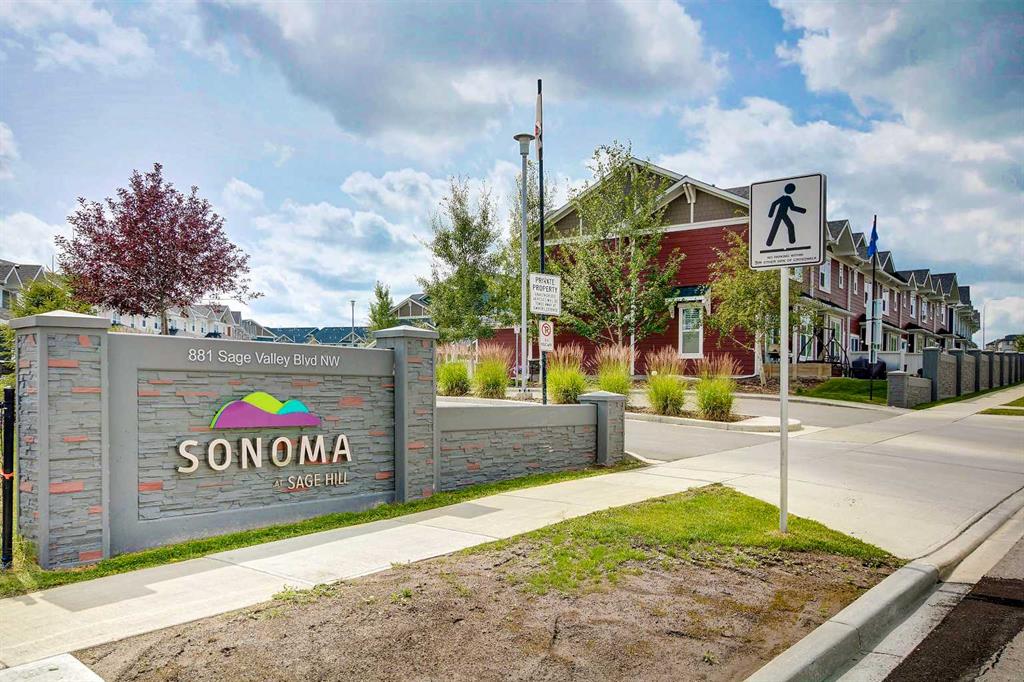 HOME SWEET HOME! Welcome to this exceptionally well maintained three storey townhouse located in a well managed complex in the highly sought after community of Sage Hill. This is a fantastic opportunity for investors and first time home buyers alike. Step inside and you’ll immediately appreciate the bright, open concept layout featuring 9 foot ceilings, gleaming laminate flooring, 2 bedrooms, 1.5 bathrooms, and over 1,237 sq. ft. of stylish living space. The main floor welcomes you with a spacious foyer and convenient access to the attached garage with additional storage. The second level is perfect for entertaining, offering a large formal dining area with access to a spacious balcony, along with a gourmet kitchen complete with a central island and stainless steel appliances. The sun filled, west facing living room, 2 piece bath and a convenient laundry area complete this level. Upstairs, you’ll find two generously sized bedrooms, both featuring walk in closets. The primary bedroom offers direct access to a modern 4 piece bathroom for added comfort and convenience. Enjoy your west facing balcony perfect for evening relaxation or summer BBQs. This pet friendly complex (with board approval) is ideally located just steps from Sage Hill Crossing, Creekside Shopping Centre, and Beacon Hill, with major retailers such as Costco, Walmart, and T&T Supermarket nearby. With quick access to Stoney Trail and Shaganappi Trail, plus an abundance of nearby ravine pathways and playgrounds, this vibrant community truly has it all. This home is a MUST VIEW! Book your private viewing today!