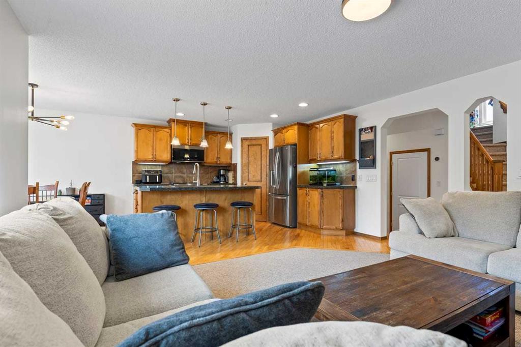 OVER $30K IN UPGRADES | NEWER ROOF | NEW WINDOWS THROUGHOUT | NEW HOT WATER TANK | GREAT STARTER HOME AT A FANTASTIC PRICE! Beautifully maintained home in one of Calgary’s most loved family communities—Cranston. Offering over 1,700 sq ft above grade, this home delivers 3 bedrooms, 2.5 bathrooms, a large upper bonus room, and a double front-attached garage. Hardwood flooring flows through the kitchen and dining areas, leading into a welcoming open-concept main floor perfect for everyday living and entertaining. The kitchen is well-equipped with stainless steel appliances, a corner pantry, tile backsplash, a central island with breakfast bar seating, and plenty of cabinetry. The sunny dining area opens directly to the sunny back deck. A convenient laundry/mudroom off the garage and a tucked-away 2 pc powder room complete the main level. Upstairs, the layout truly shines with a spacious bonus room featuring large windows and a cozy stone-faced corner fireplace, ideal for movie nights, a playroom, or a second living space. You’ll also find three generously sized bedrooms, including a primary retreat with a walk-in closet and a 4 pc ensuite offering a jetted soaker tub, stand-up shower, and extended vanity. The unfinished basement is ready for your future plans—whether that’s a home gym, extra bedrooms, or a full recreation space. Outside, enjoy a fully fenced backyard, a large deck, and plenty of room for kids, pets, or gardening. Ideally situated near the Cranston Ridge and Bow River pathway system, the Cranston Residents Association (Century Hall) with its splash park, skating, and community programs, plus multiple playgrounds, green spaces, and walking paths. Schools are close by with both public and Catholic options in Cranston and surrounding communities, and you’ll love the quick access to Deerfoot Trail and Stoney Trail.