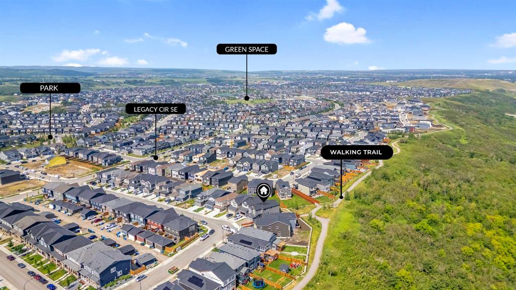 STUNNING FAMILY HOME IN LEGACY! 4 BED + BONUS ROOM | MAIN FLOOR DEN | DOUBLE GARAGE | RIVER & CITY VIEWS. Welcome to this STUNNING STERLING HOMES MASTERPIECE IN THE Sought after community of LEGACY, BACKING ONTO OPEN GREEN SPACE WITH BREATHTAKING RIVER AND CITY VIEWS! Thoughtfully crafted for modern living, this spacious two-storey home combines elegant design, practical spaces, and luxurious finishes to create the perfect family retreat. This beautiful residence offers 4 GENEROUS BEDROOMS PLUS A BONUS ROOM UPSTAIRS, a convenient MAIN FLOOR DEN, and a bright, airy OPEN-CONCEPT MAIN FLOOR that seamlessly connects living, dining, and kitchen spaces — ideal for both everyday living and entertaining. At the heart of the home, you’ll find a DREAM KITCHEN featuring an OVERSIZED ISLAND, CABINETS UP TO THE CEILING, high-end STAINLESS STEEL APPLIANCES, and a BUILT-IN OVEN AND MICROWAVE — a true chef’s delight. The inviting living room is anchored by a stylish ELECTRIC FIREPLACE, while OVERSIZED WINDOWS flood the space with natural light and showcase the stunning natural surroundings. Upstairs, retreat to your private PRIMARY SUITE, complete with a HUGE WALK-IN CLOSET and a luxurious 5-PIECE ENSUITE BATHROOM featuring an OVERSIZED SHOWER, relaxing SOAKER TUB, and double vanity — your own personal spa. Three additional spacious bedrooms and a large BONUS ROOM provide plenty of room for a growing family, guests, or a dedicated play area. Additional highlights include a DOUBLE ATTACHED GARAGE for added convenience and storage, and a fully landscaped yard backing directly onto open green space — giving you privacy, beautiful views, and access to nature right from your backyard. Located in the highly desirable Legacy community in SE Calgary, this home is surrounded by countless amenities and thoughtful community features: -Extensive Walking & Biking Trails: Over 15 km of scenic pathways connecting green spaces and playgrounds. -Parks & Playgrounds: Numerous family-friendly parks, ponds, and picnic areas throughout the neighborhood. -Thriving Commercial Hub: Just minutes to grocery stores, restaurants, cafés, banks, and everyday essentials. -Top Schools & Childcare: Nearby established schools and future planned schools make Legacy ideal for families. -Easy Commuting: Quick access to major routes like Macleod Trail and Stoney Trail, connecting you to the rest of Calgary with ease. -Community Spirit: Beautifully landscaped boulevards, community gardens, and year-round events create a warm, welcoming atmosphere for all ages. DON’T MISS THIS RARE OPPORTUNITY TO OWN A MODERN, MOVE-IN READY HOME IN ONE OF CALGARY’S MOST CONNECTED AND FAMILY-ORIENTED COMMUNITIES — YOUR LEGACY LIFESTYLE AWAITS!