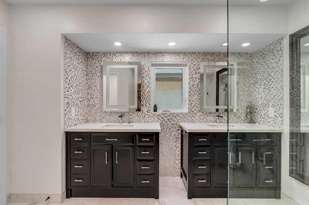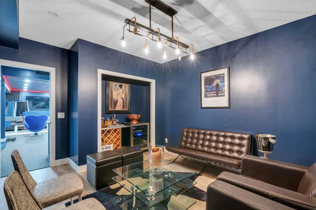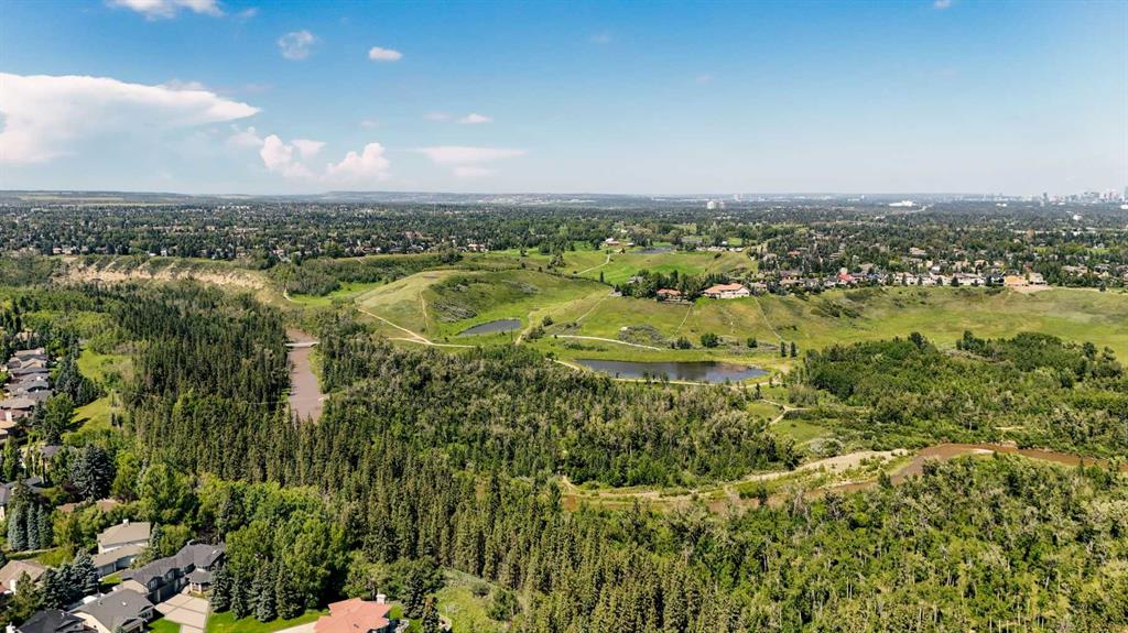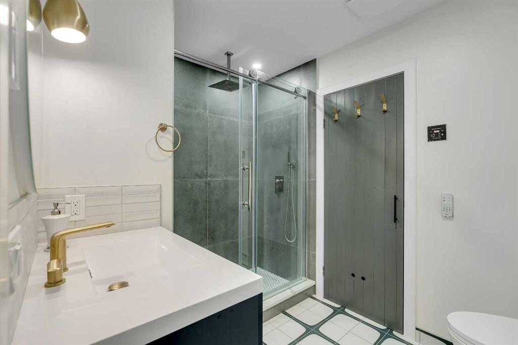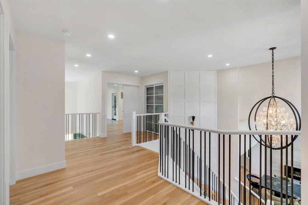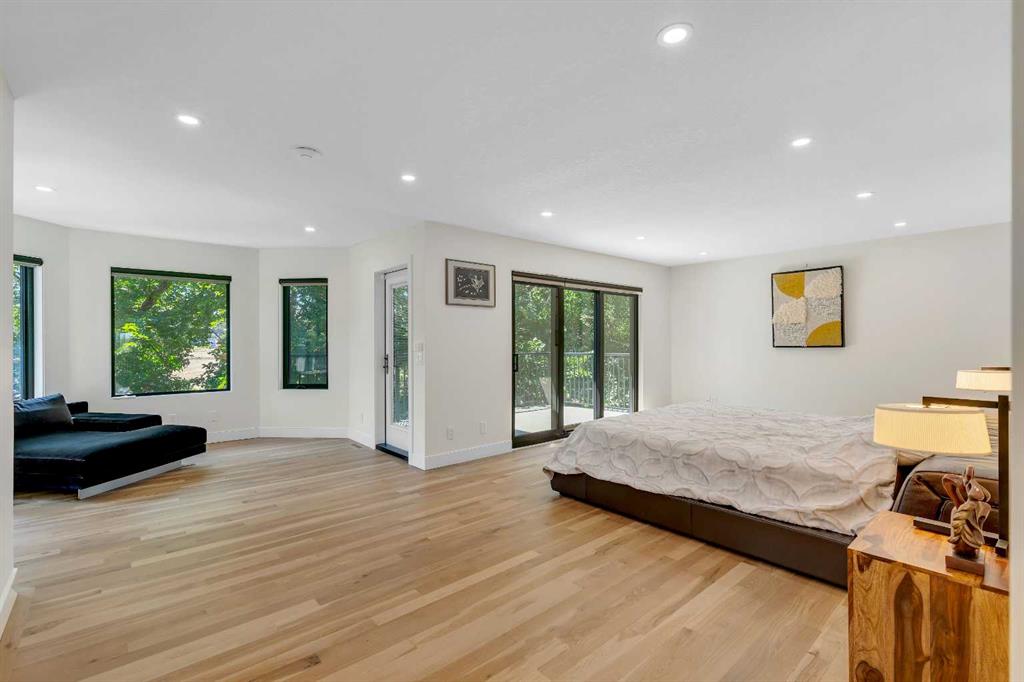 This showstopping residence blends architectural sophistication with modern luxury, backing directly onto a serene green space with a sun-filled south-facing backyard. Spanning over 3,000 sq ft above grade plus a fully finished basement, this extensively renovated custom home delivers an unforgettable living experience tailored for both refined entertaining and comfortable family living. The main level is defined by designer finishes, white oak hardwood, and expansive black-trimmed triple-pane windows that flood the space with natural light and frame peaceful views of the treed landscape beyond. The soaring open to above living room is anchored by a dramatic feature wall with a sleek fireplace, while the adjacent front-facing family room complete with its own fireplace and soaring ceiling offers versatility as a formal dining space or lounge. At the heart of the home, the gourmet kitchen is a true chef’s haven, showcasing a quartz waterfall island, full-slab backsplash, designer cabinetry, custom hood fan, and premium integrated appliances including a 6-burner gas cooktop, Thermador fridge, Miele dishwasher, built-in oven, steam cooker, and warming drawer. A sunny breakfast nook with built-in seating opens to the covered deck, ideal for al fresco dining while overlooking the yard and park beyond. A stylish powder room and a spacious mudroom with built-in laundry and a convenient dog wash complete the main level. Ascend the elegant curved staircase to discover a swoon-worthy primary retreat that impresses with its grand proportions, serene sitting area, and private balcony overlooking the treetops. The spa-inspired ensuite features dual sinks, heated floors, and an oversized steam shower, while the large walk-in closet completes the experience. Three additional bedrooms are thoughtfully positioned on the opposite side of this level, alongside a stylish 5-piece bathroom with dual sinks to keep busy mornings stress-free. The basement is an entertainer’s dream, complete with a full wet bar with beverage fridge, a mood-lit rec room perfect for movie nights and social gatherings, two additional bedrooms, a 3-piece bathroom, and a rejuvenating sauna. Outside, the south-facing backyard is a private sanctuary with two patio areas, grassy play space, and a unique enclosed shed with skylight perfect for gardening or creative use. Extensive upgrades include hardwired motorized blinds, custom millwork, updated plumbing and electrical, new roof, exterior foam insulation and stucco, driveway extension, EV charger, heated garage with epoxy floors, water filtration system, motorized deck screens, Gemstone lighting, and more. Located just steps from Fish Creek Park, community ponds, and walking trails, this extraordinary home is an unparalleled blend of thoughtful design, luxurious comfort, and timeless appeal.